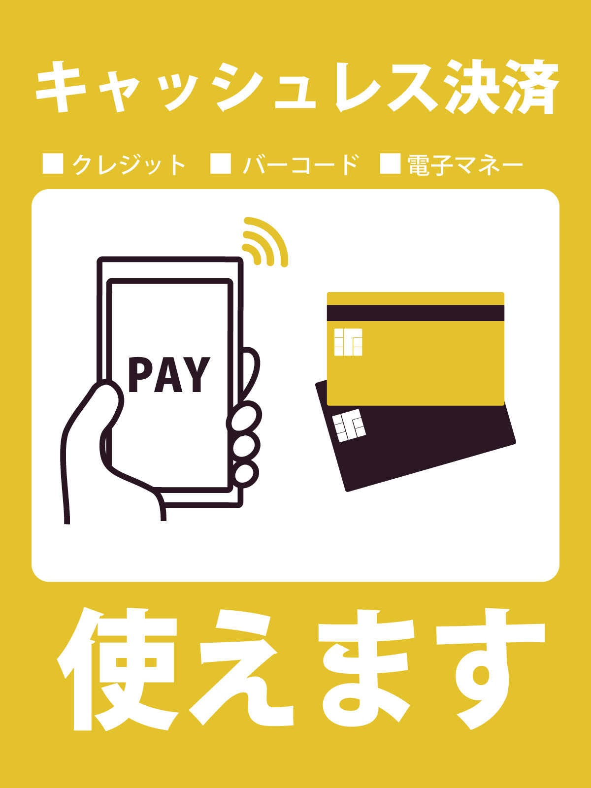 クレジットカード、電子マネー、QR決済を取り扱っております。