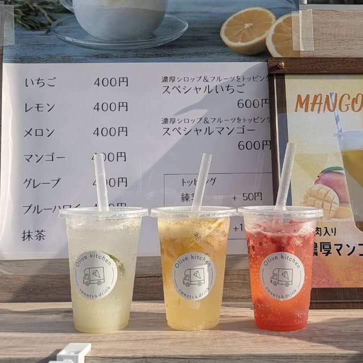 クレープ、チュロス、ホットドッグ、コーヒー、ドリンク