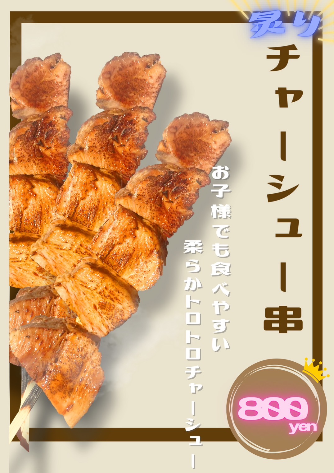 炙りチャーシュー丼、おつまみチャーシュー、チャーシューサンド、チャーシュー麺、豚串