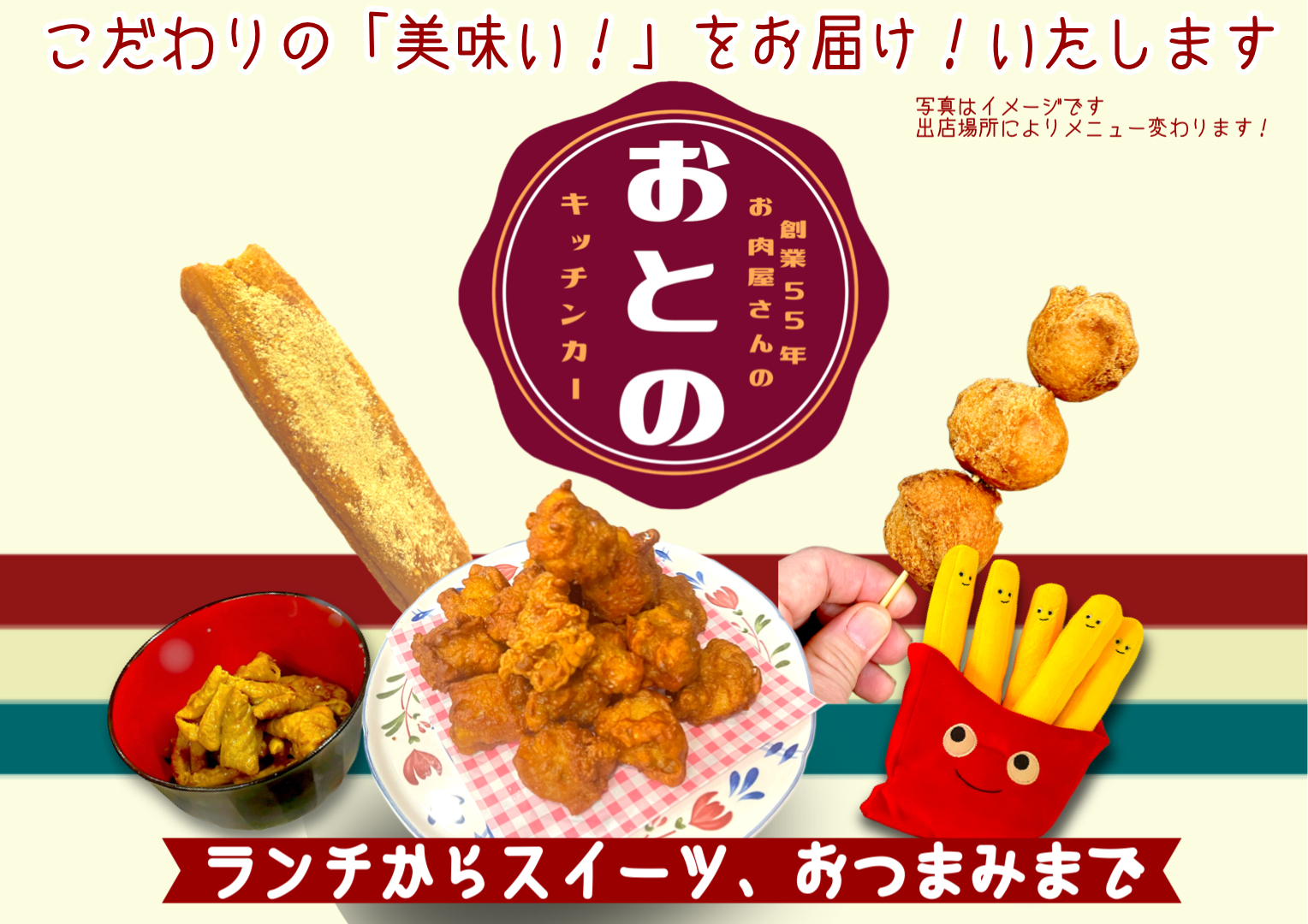 フライヤーを積んでいるので、フライ物が得意ですが、ガス使用禁止の場所では自家製ホルモンや自家製ハンバーグ、プルドポークメニューなども可能です!