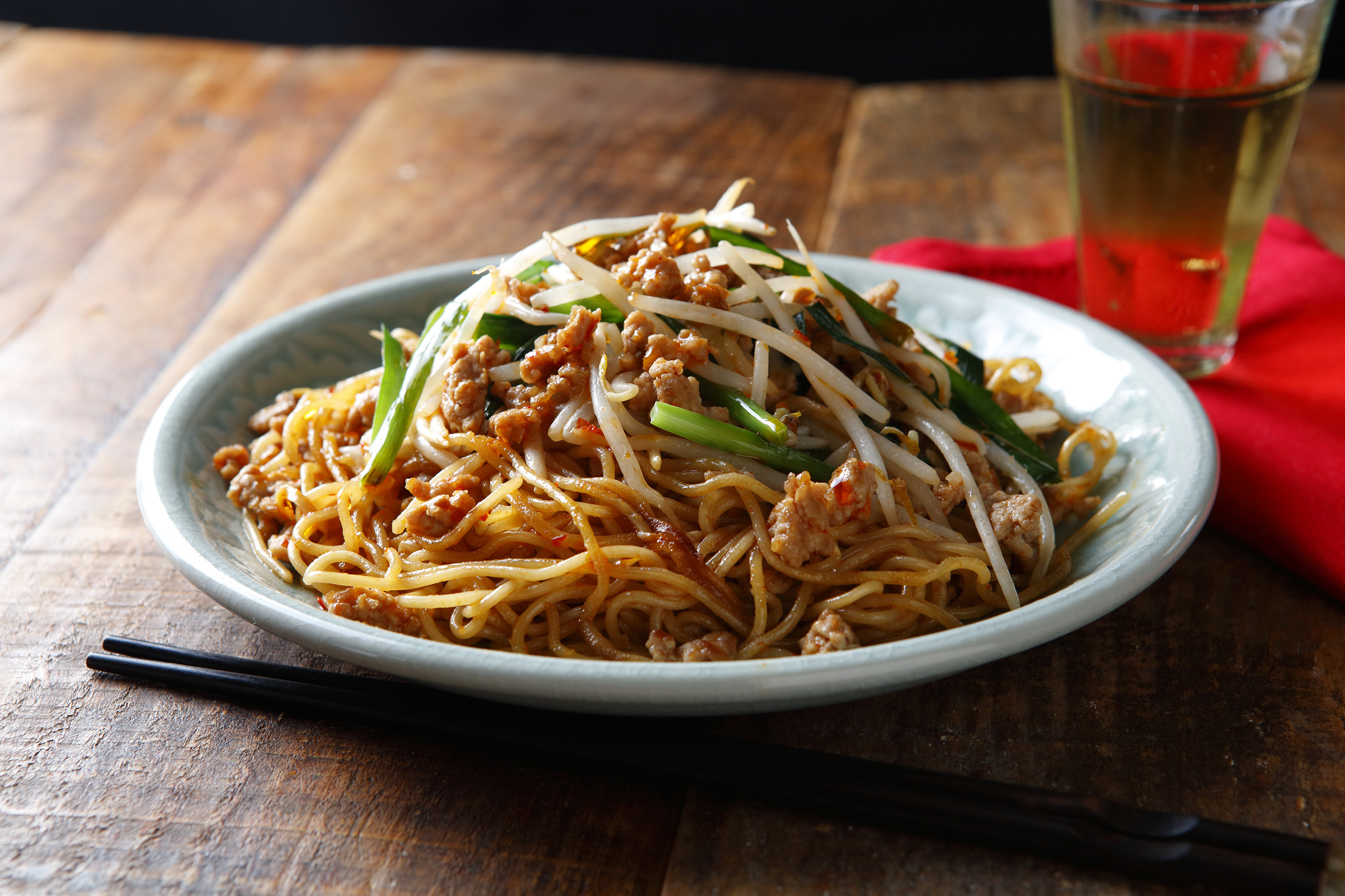 麺の味を活かすコク旨ソース焼そばだけでなく、豆板醤、ニンニクを効かせたピリ辛の台湾焼そばも人気のメニュー。