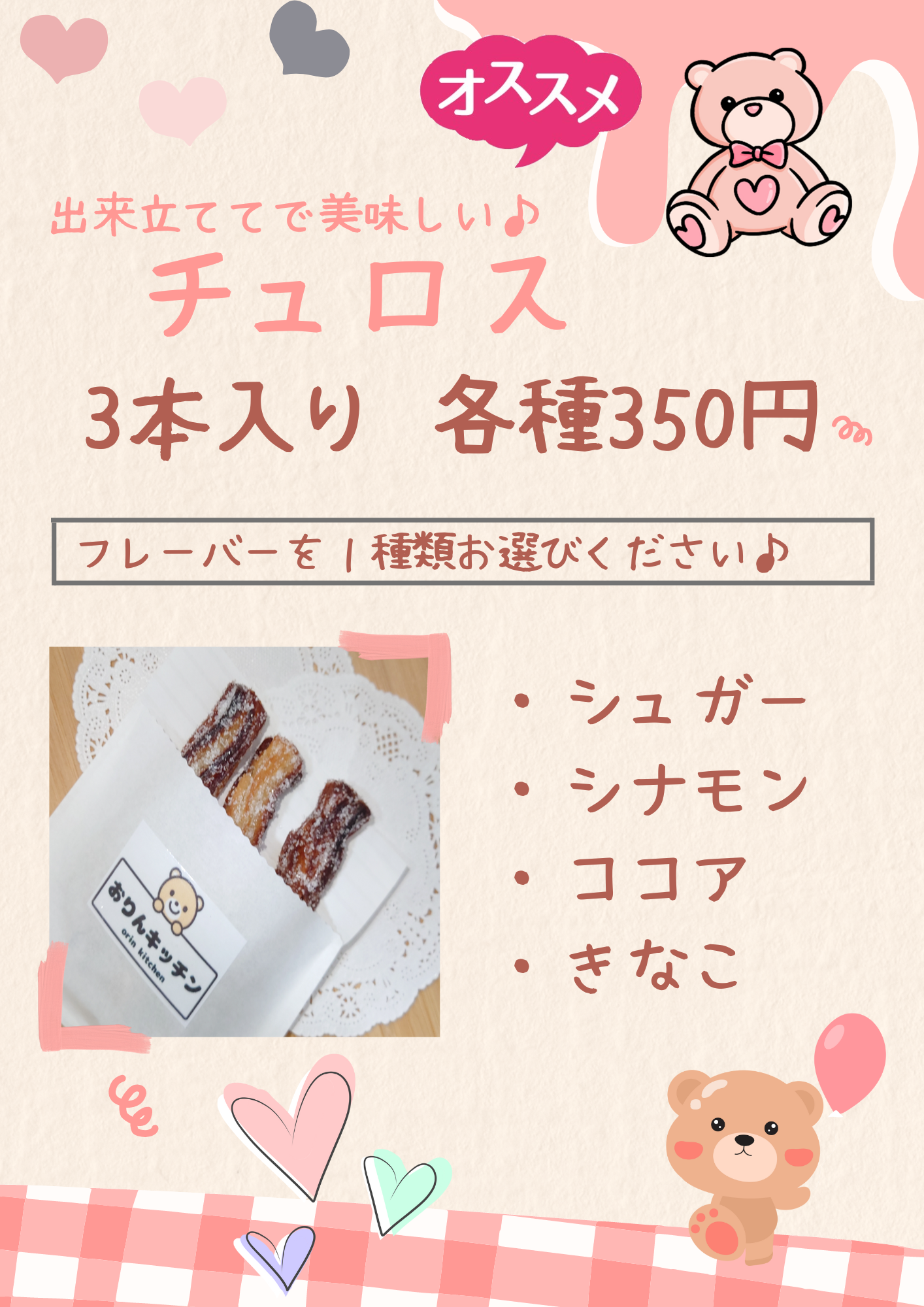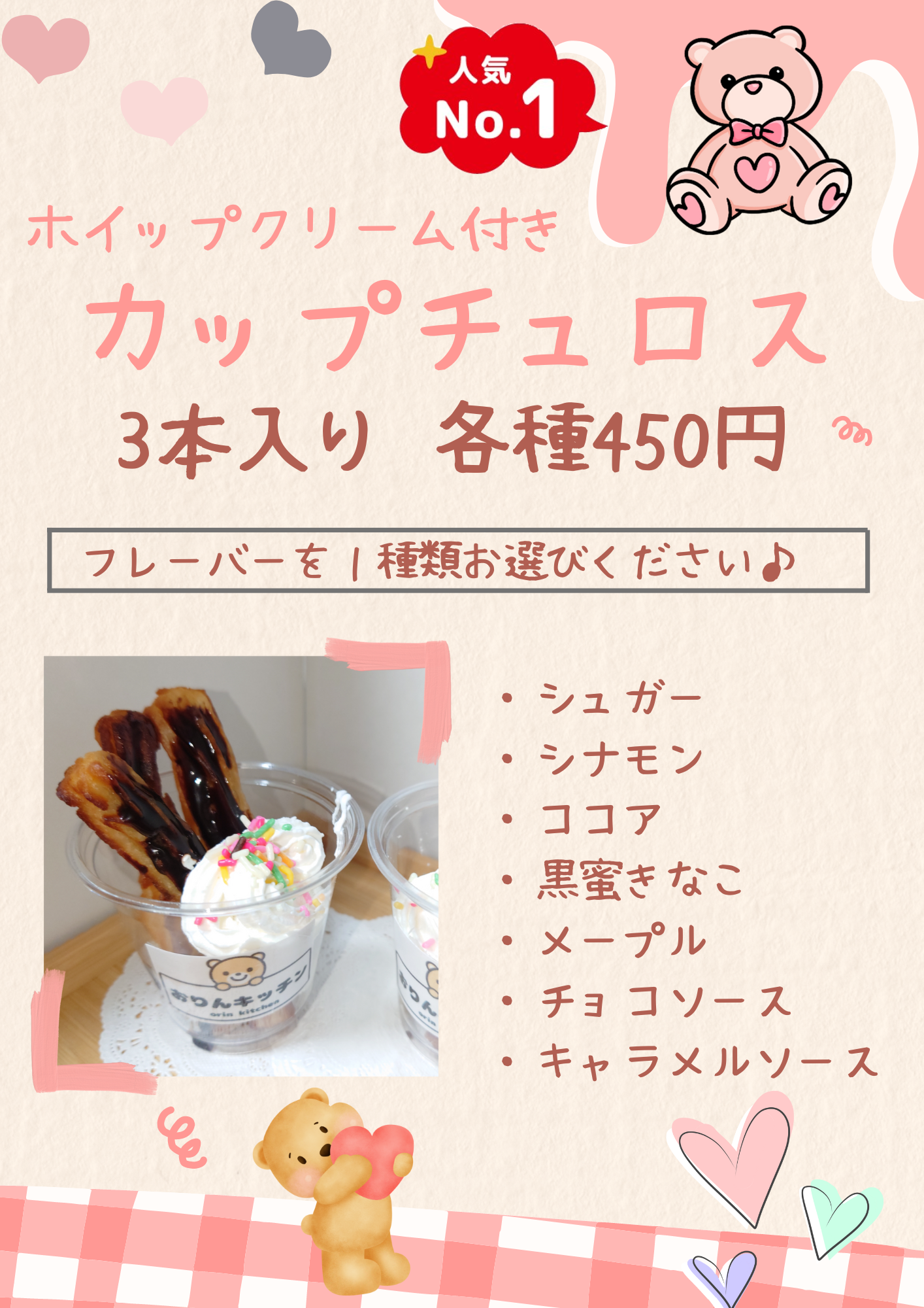 1番人気のホイップクリーム付きチュロスです(*^^*)