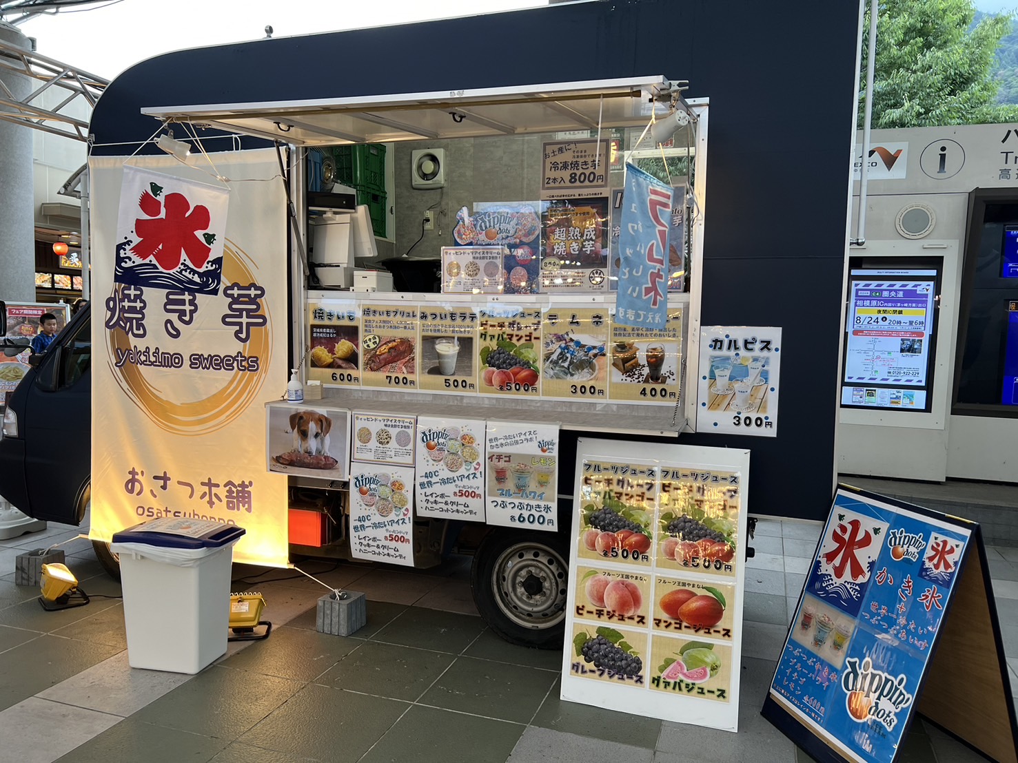 おさつ本舗のキッチンカーは、各種大型イベントに多数出店経験がある他、地域で開催される各種イベント、プロスポーツ公式戦、関東圏最大級のサービスエリアや道の駅等で出店しております。最近では、映画やドラマの撮影に随行し、キャストさんやスタッフさんにできたての食事を提供するサービスを行うことも。