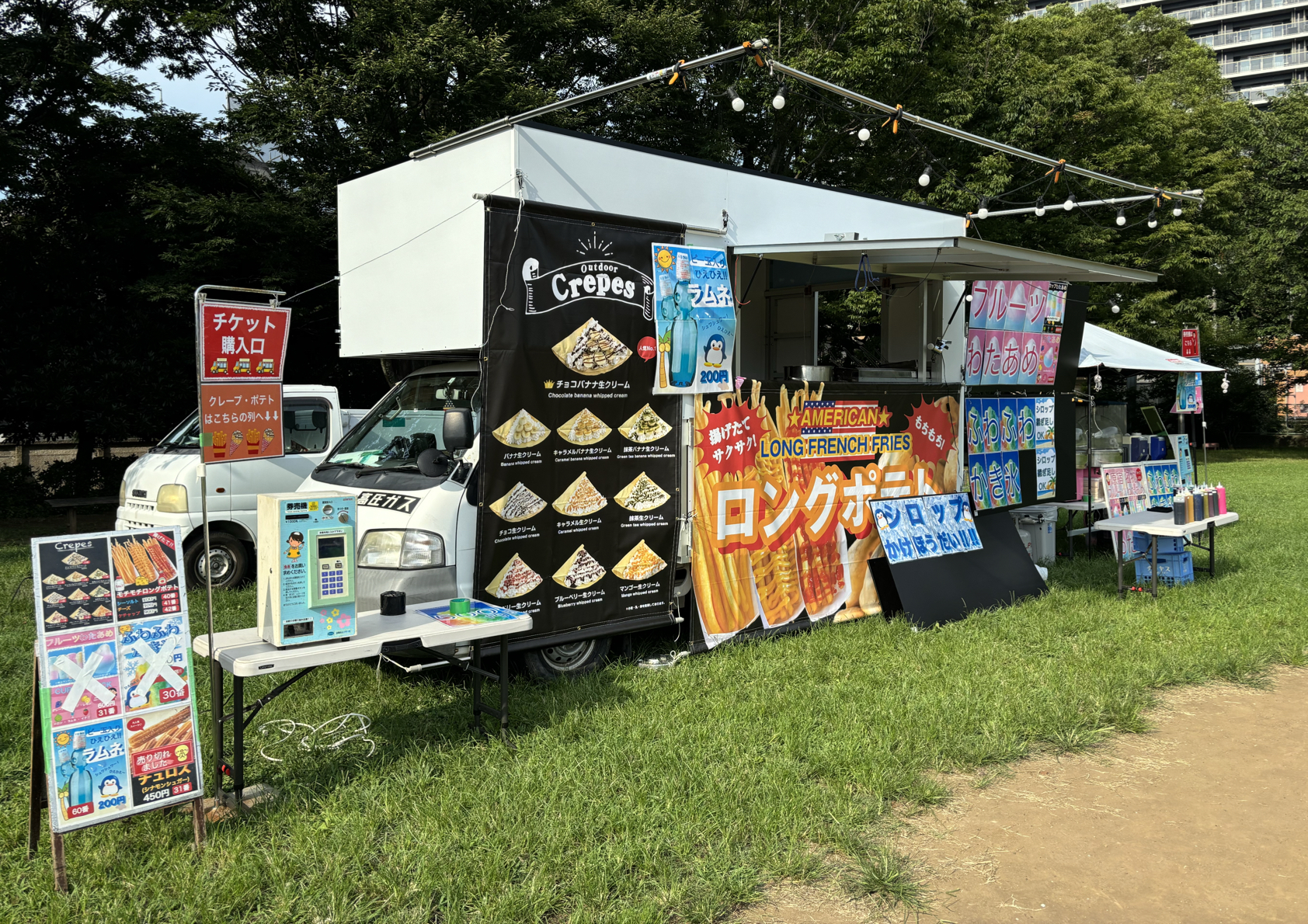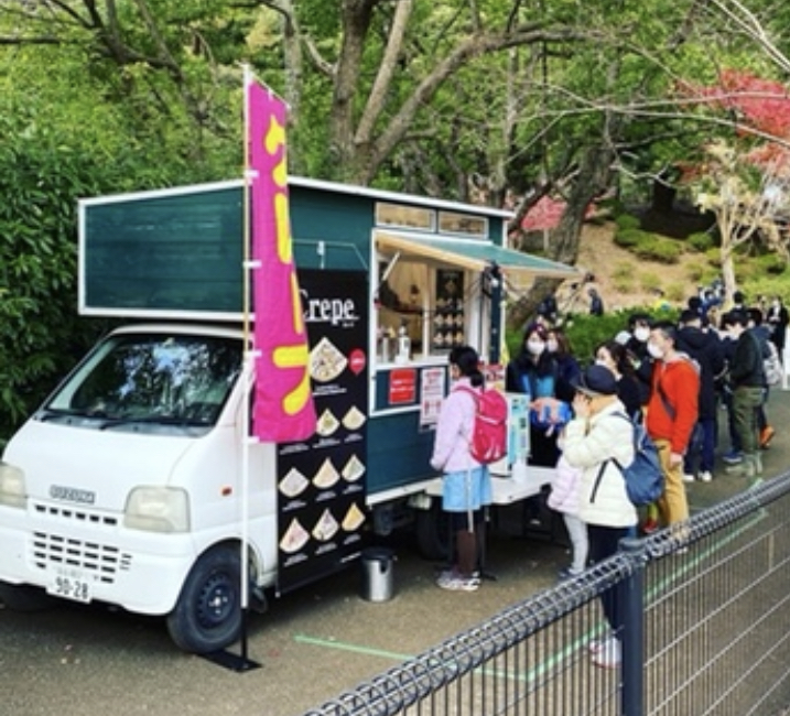 Outdoor Crepesさんは見せ方にもこだわりをもっています。分かりやすく目立つ設営はイベントの盛り上げにお役に立つことができる一台に間違いないでしょう。イベント出店ならOutdoor Crepesさんにぜひご相談してみてはいかがでしょうか。