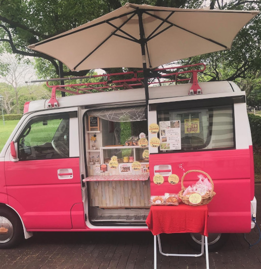 ピンク系でまとめた軽キッチンカーでは自家製パンを使用した「コッペパンメニュー」をはじめ「ホットドッグ」「ミニチュロス」etc.スイーツ&自家製シロップドリンクをご提供しています。