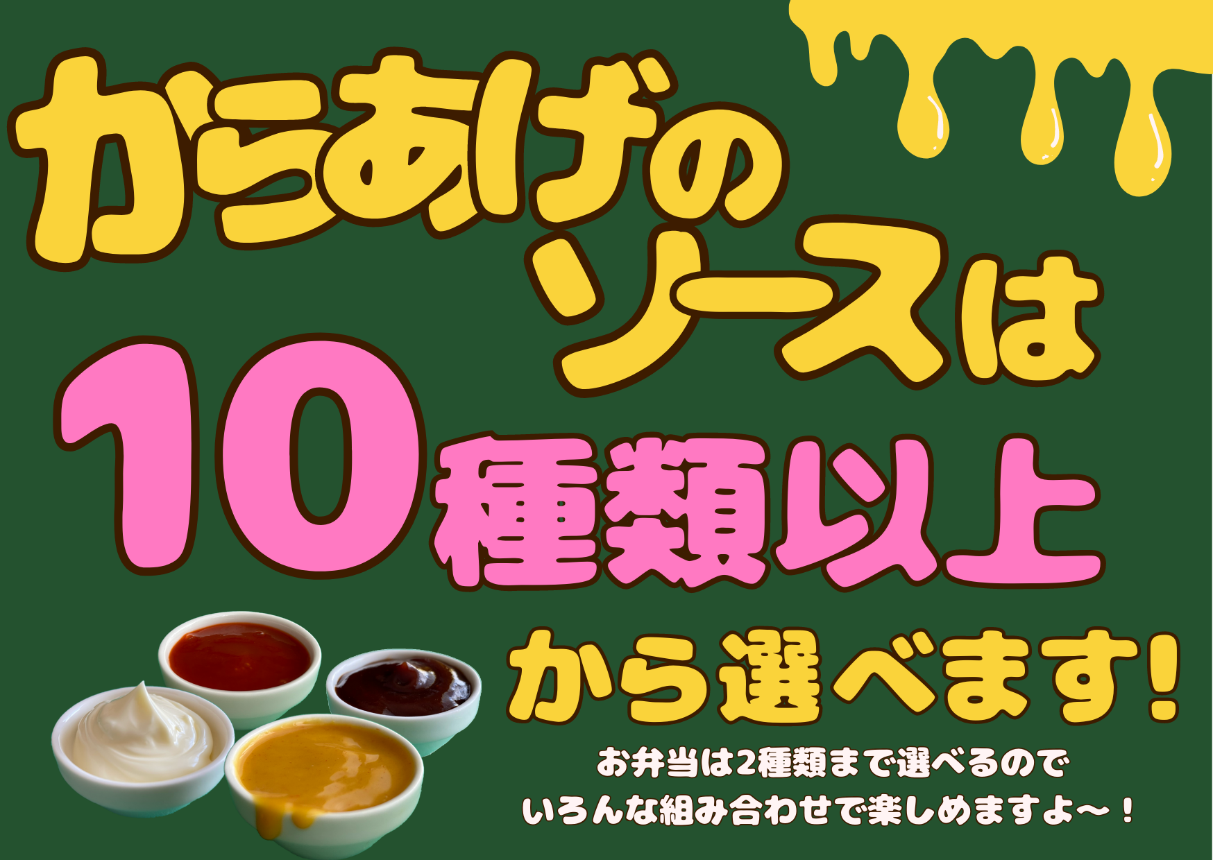 からあげにかけるソースがなんと10種類以上ある中から選べます!