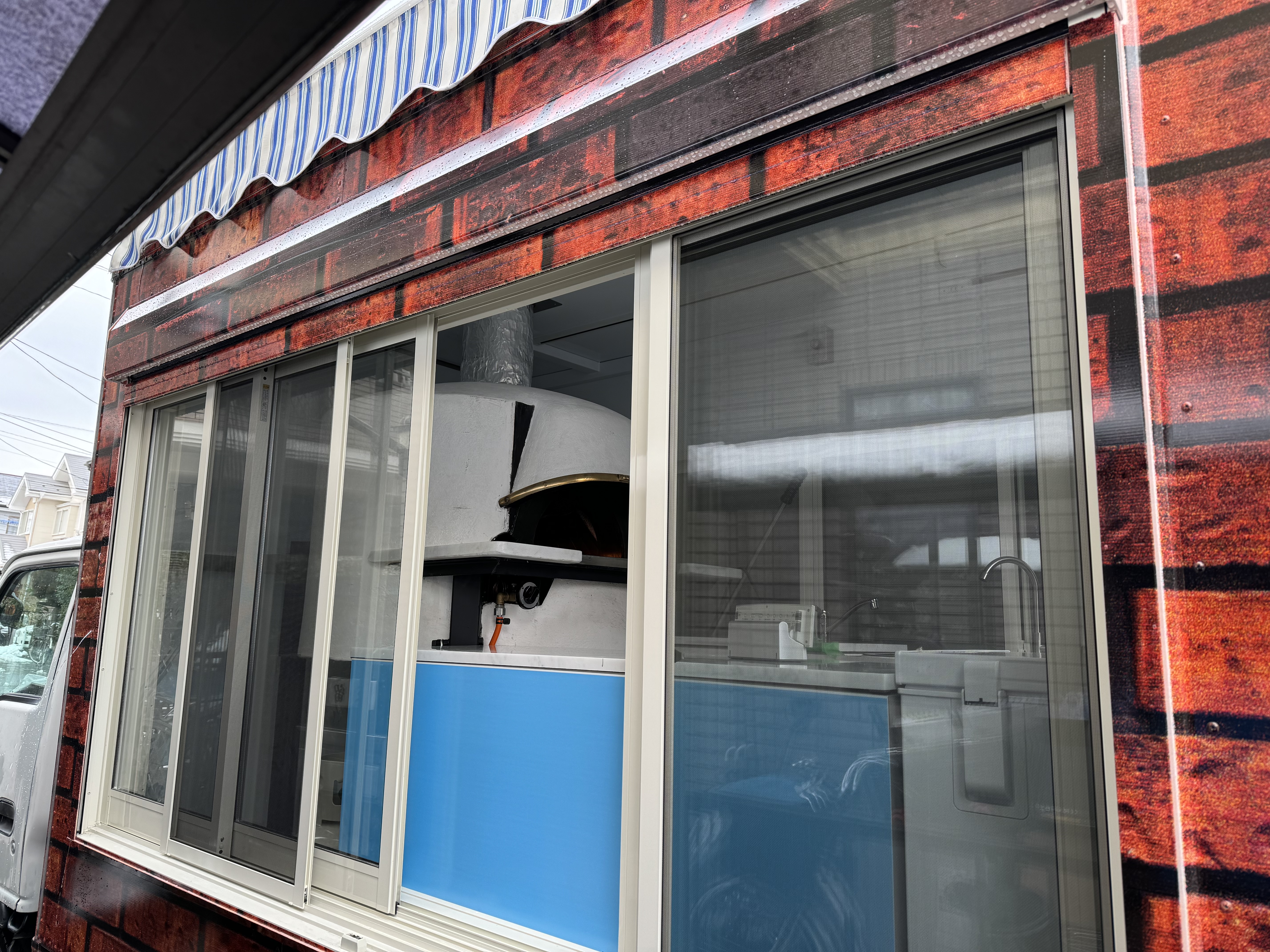 このキッチンカー、車の中にミキサーも積んでしまいました。生地もイタリアの粉100%で練ってます。