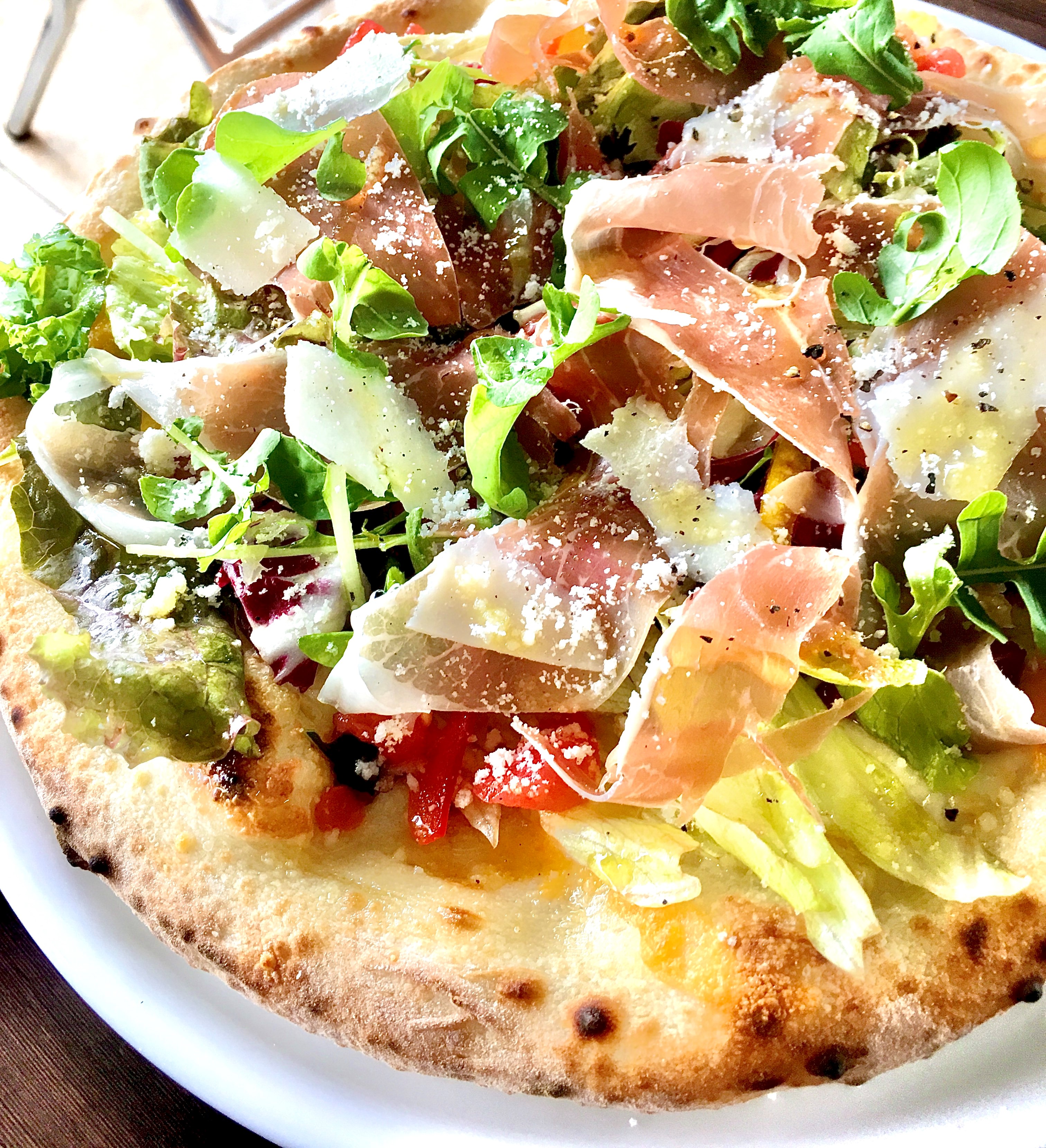 おすすめは、ボリューム満点のサラダピッツァ! 写真を撮って、SNSに載せましょう!! 映えます!