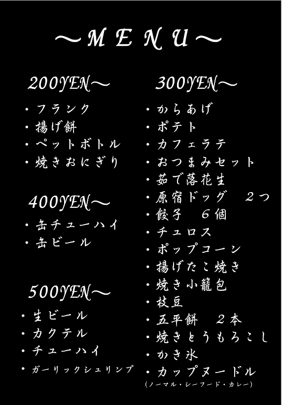 シーズン毎や、出店先によってメニュー変更が自由に出来るので、夏のお祭りなら焼き物中心!フェスなら軽食とアルコールを中心に!など、対応メニューが豊富ならでは(^^♪