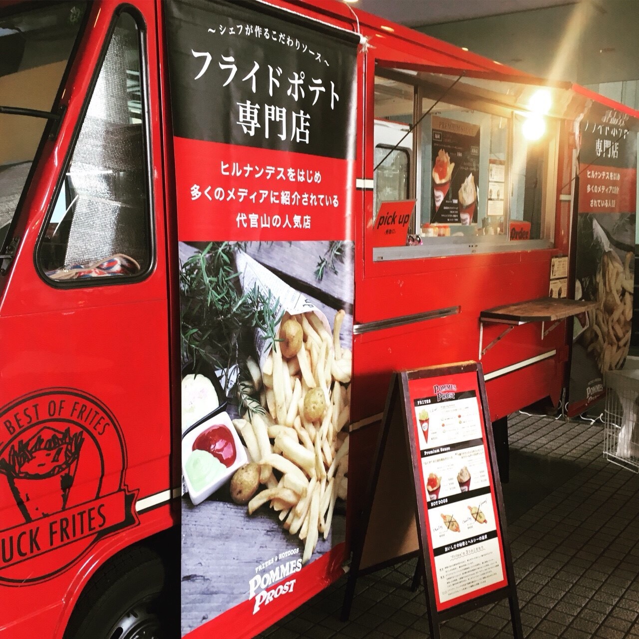 みんなが大好きフライド ポテトにオリジナルのプレミアムソースをかけて食べる、超人気店舗、 POMMES PROST !真っ赤なキッチンカーから出てくる熱々のフライドポテトは一度食べるべし!