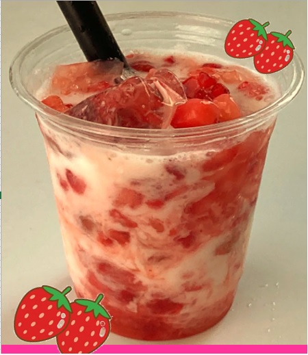 タンドリーチキンピタパンサンド、ベビーカステラ、じゃがバター、ナタデココストロベリードリンク、タピオカドリンク