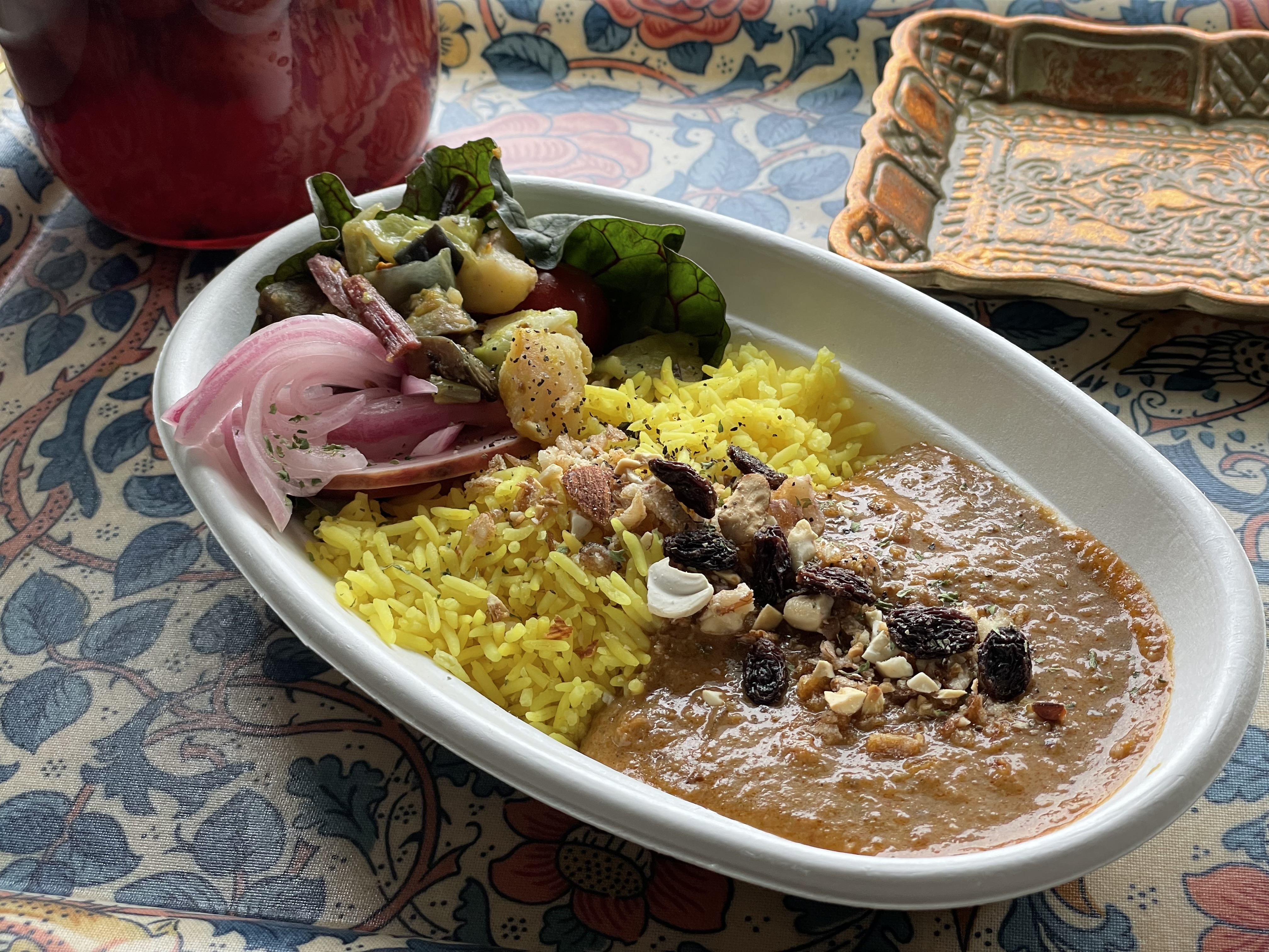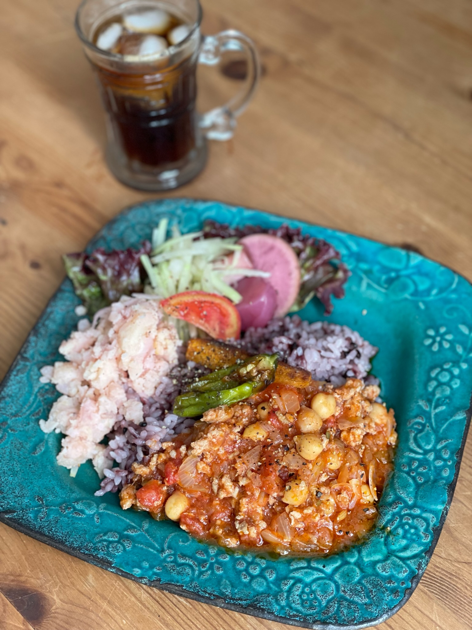 新しいメニューでこちらもveganタイプでありながら、ひよこ豆のターメリック炒めやロースト野菜、ピクルスをトッピングし、食べ飽きない工夫を凝らしたスパイシーなごはんメニューとなっております。スリランカカレーと組み合わせると絶妙な味わいになるのでおすすめです。