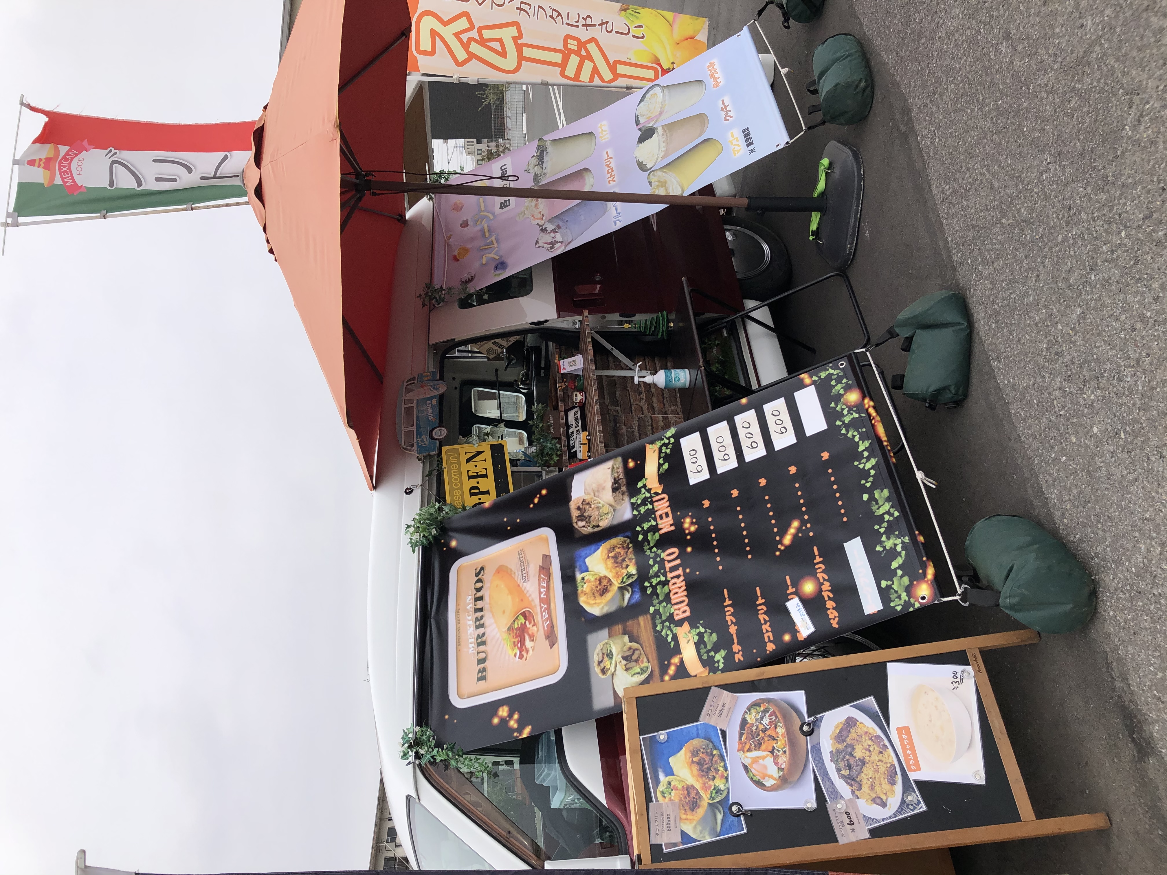 クイーンブリトーのキッチンカー は場所を問わず、色んな場所に馴染み易いお洒落なワーゲン風のキッチンカー です。
