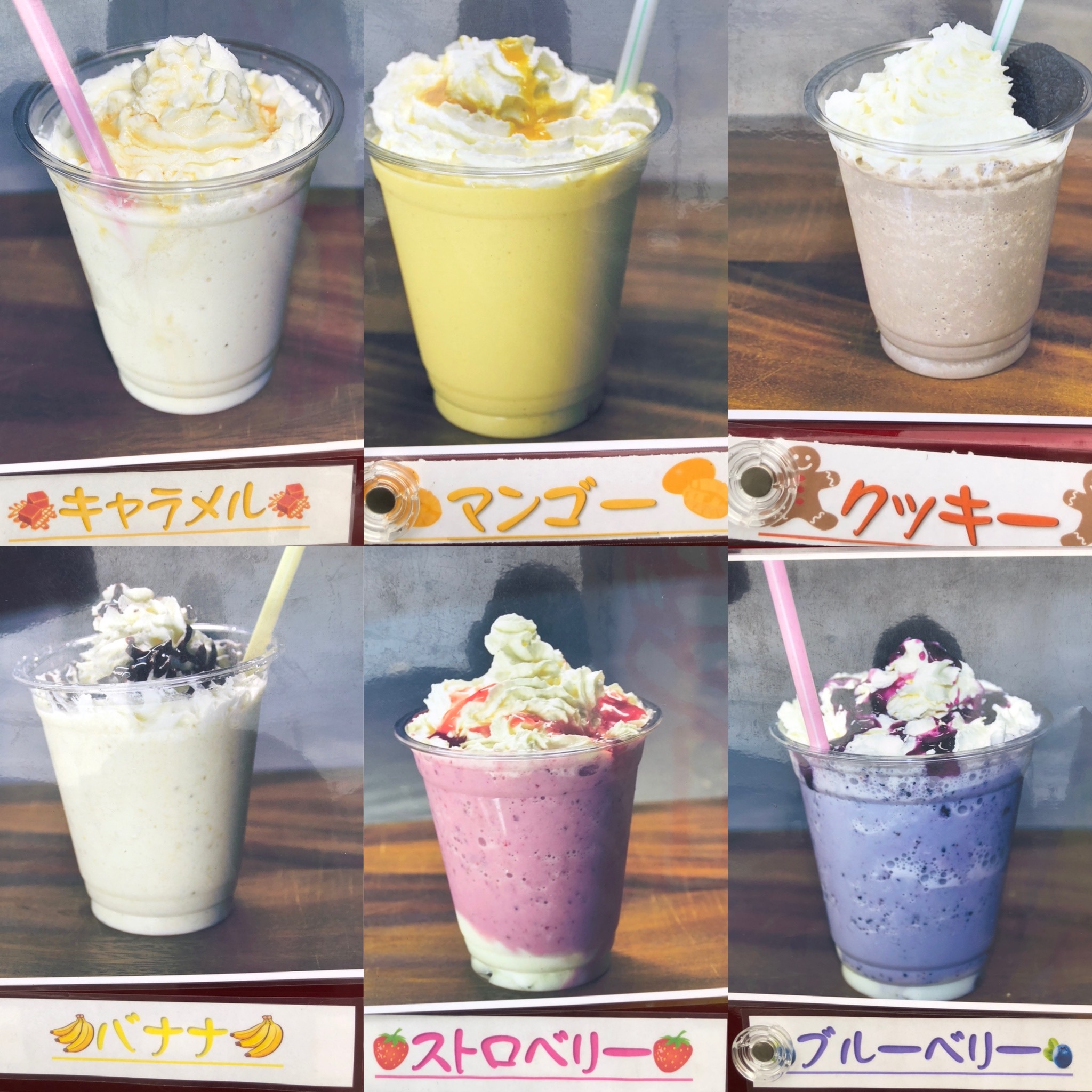 フルーツ、ミルク、アイス、などを美味しい配合でミックスして、ブレンダーでお作りします。