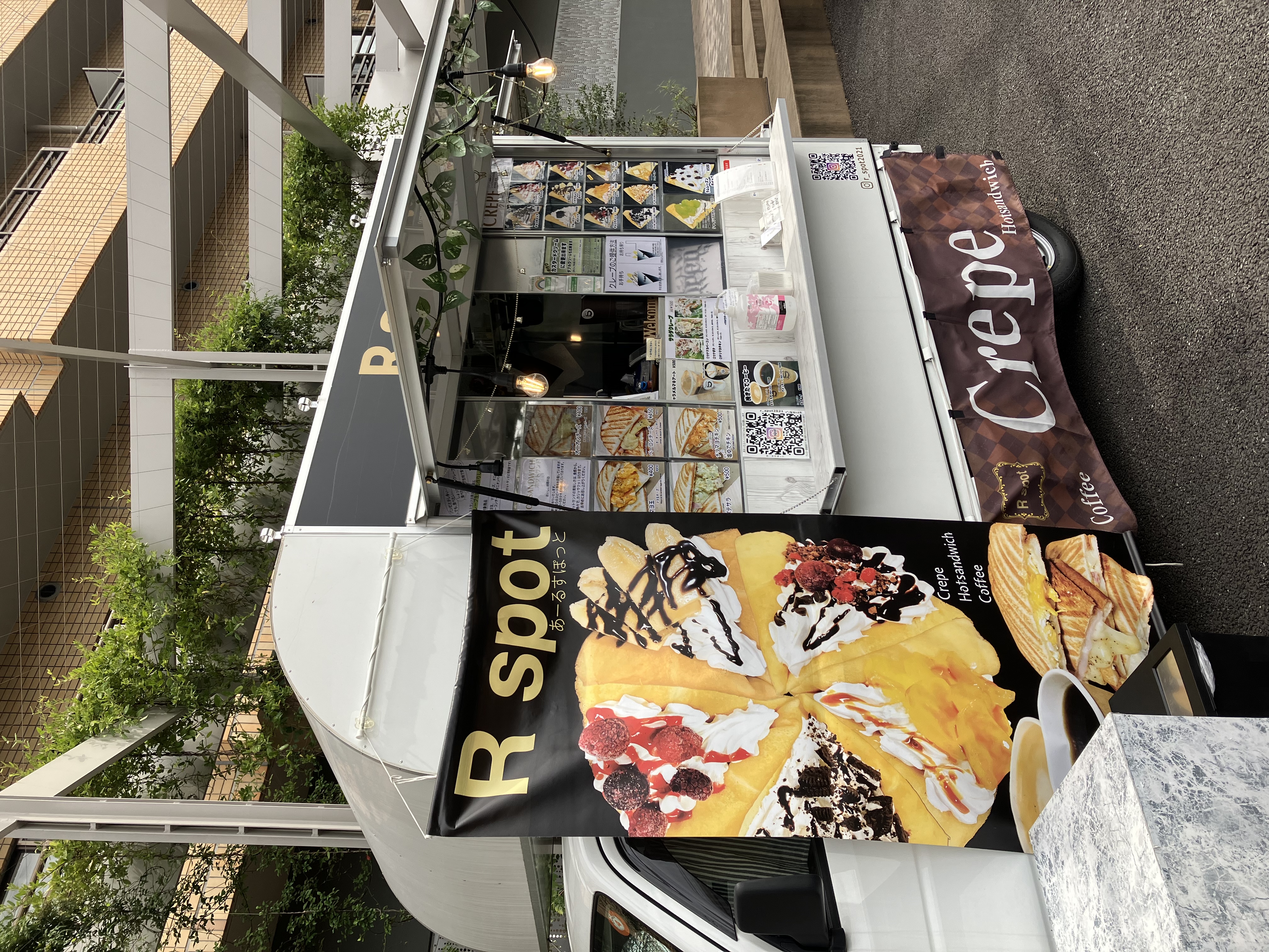 R spotのクレープは、住宅地でも公園でもファミリー層に絶対的人気を誇ります。