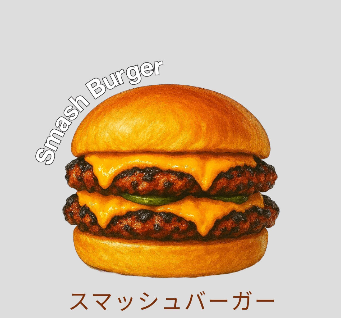 アメリカ産牛肉100%のパティをグリドルの上でプレスして一気に焼き上げるスマッシュバーガー、自家製ソースとチェダーチーズが肉本来のうま味を引き立てます