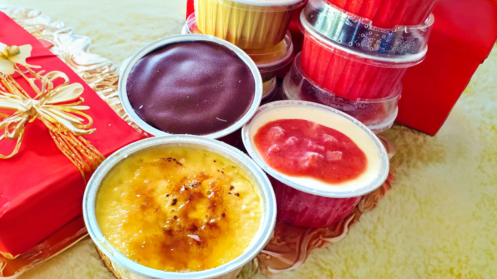 アイスブリュレ、ショコラフラン、和紅茶ゼリー、