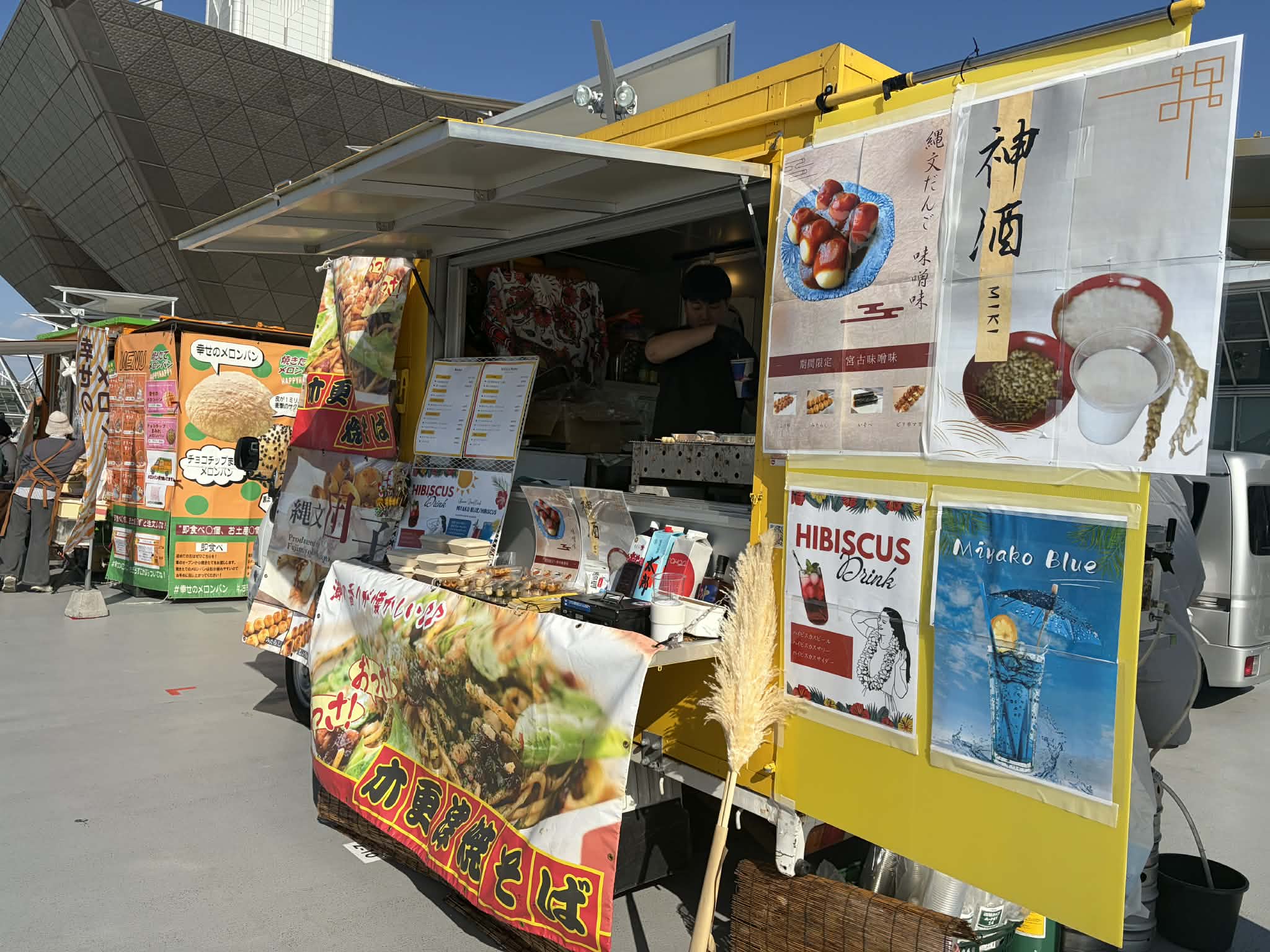 木更津焼きそば/スタミナイカ焼き/焼き団子/縄文グルメ、縄文団子/琉球タコライス/BBQチキン/宮古島ハイビスカスドリンク/宮古ブルードリンク/ミキ(神酒)
