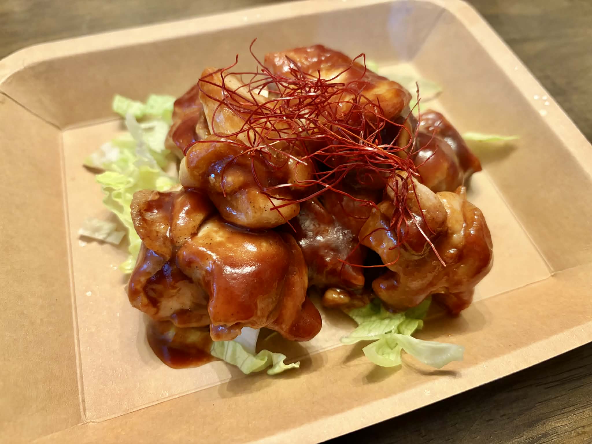 具材にはキャベツと鶏そぼろ、天かすを合わせたシンプルな一品。