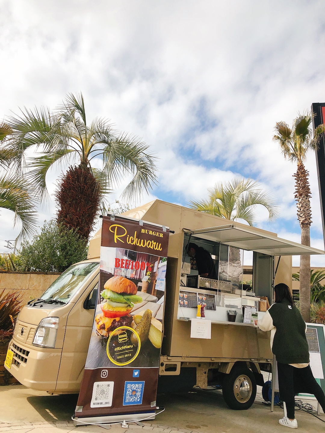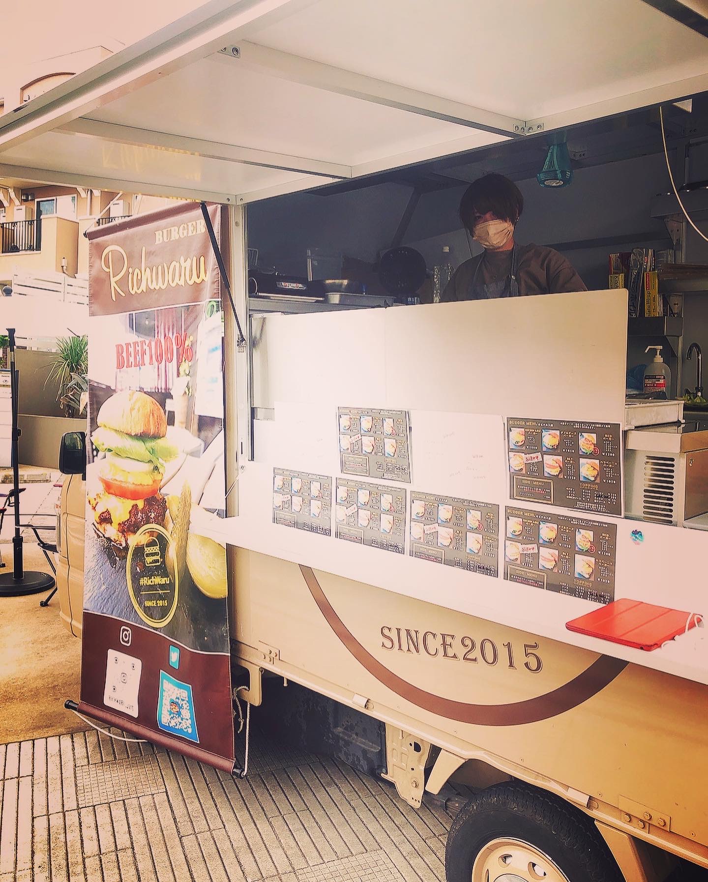 Richwaruのキッチンカーではリピーター多数のハンバーガーをはじめ、ジューシーなフランクフルトやアルコール&ソフトドリンク等子供から大人まで利用できる商品を販売しております。
