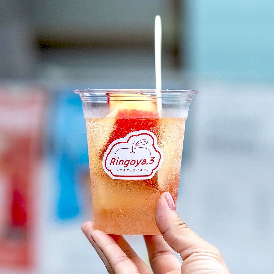 りんご飴、冷凍りんご飴ソーダ、りんごシャーベット、アップルティー、りんごジュース