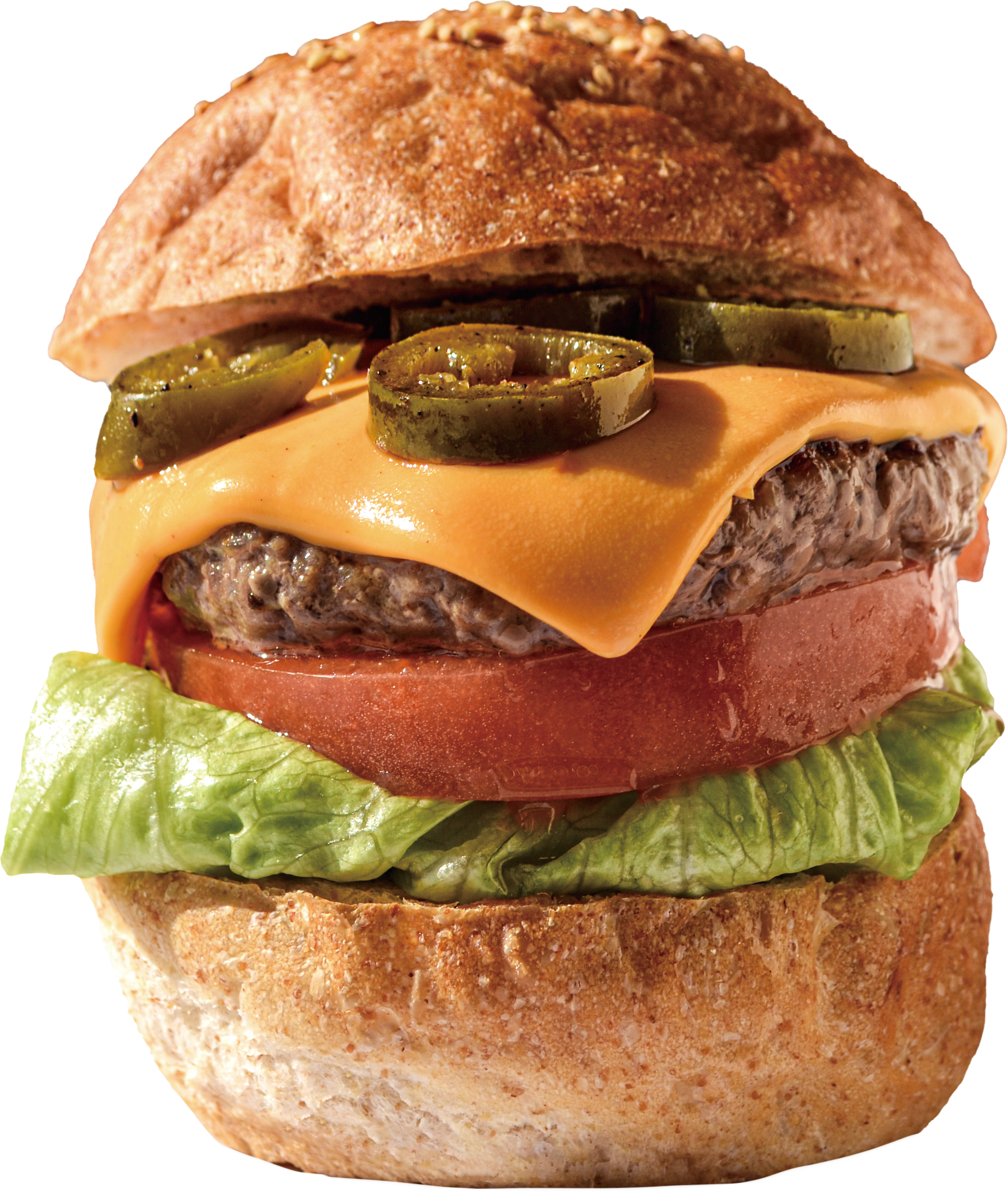 牛肉100%の、まるでステーキみたいなパティ(お肉)をお楽しみいただけるハンバーガーに仕上げました。