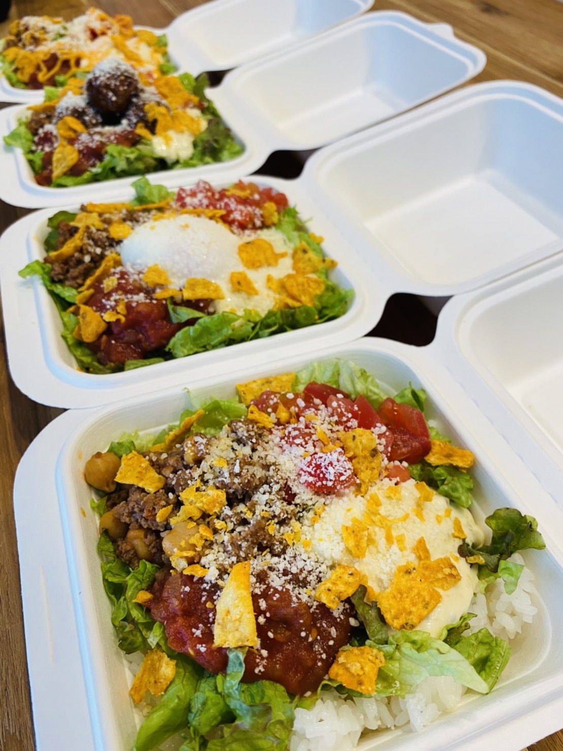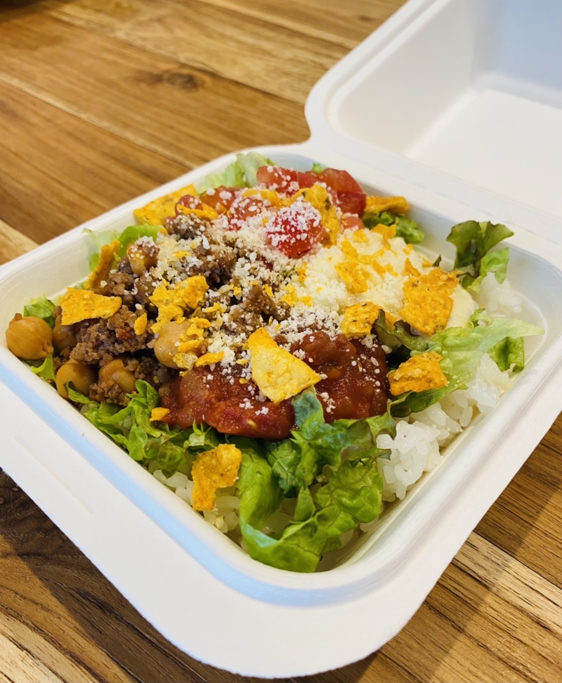 タコライスに棚田米秋田こまち100%を使用!棚田米はお米の甘味が抜群!!そしてお米一粒一粒がしっかり存在感を出す為、タコライスの具を混ぜた際しっかり全体に具材が行き渡り、美味しいタコライスが完成します!