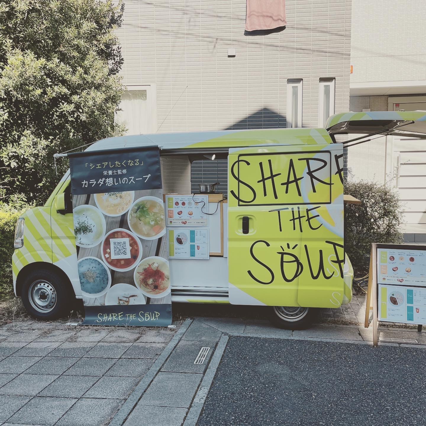 シェアザスープキッチン川口のキッチンカーはどんな風景にも溶け込む優しく可愛い外観です。