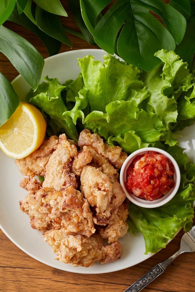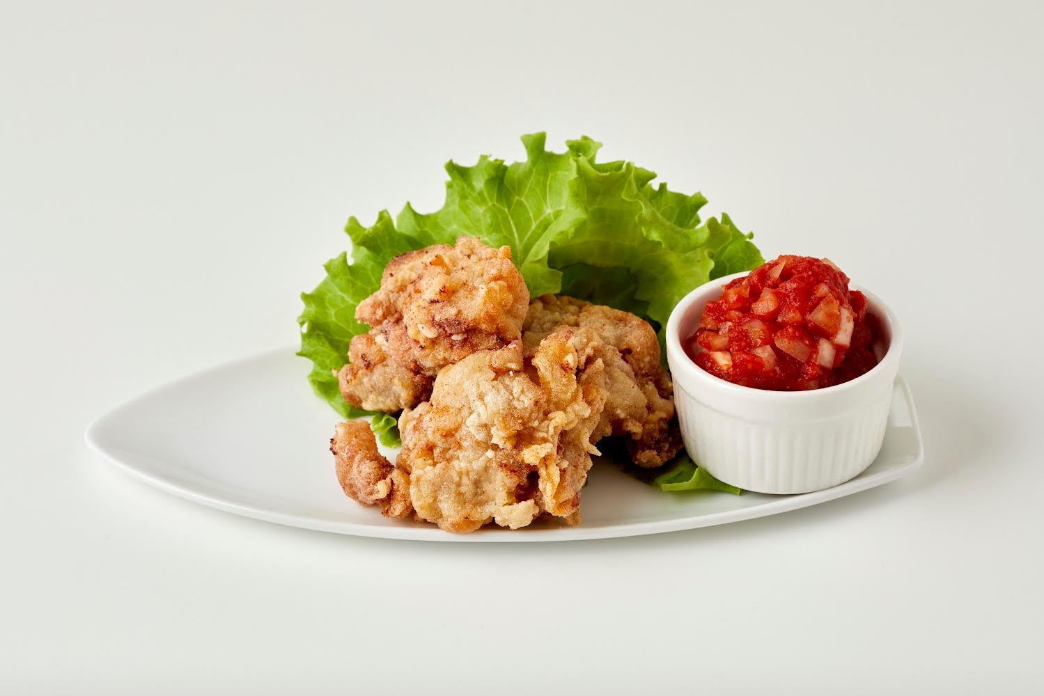 こだわりの自家製サルサソースがかかったモチコチキン!トマトと玉ねぎたっぷり、48時間じっくり煮込んだおすすめの一品です!