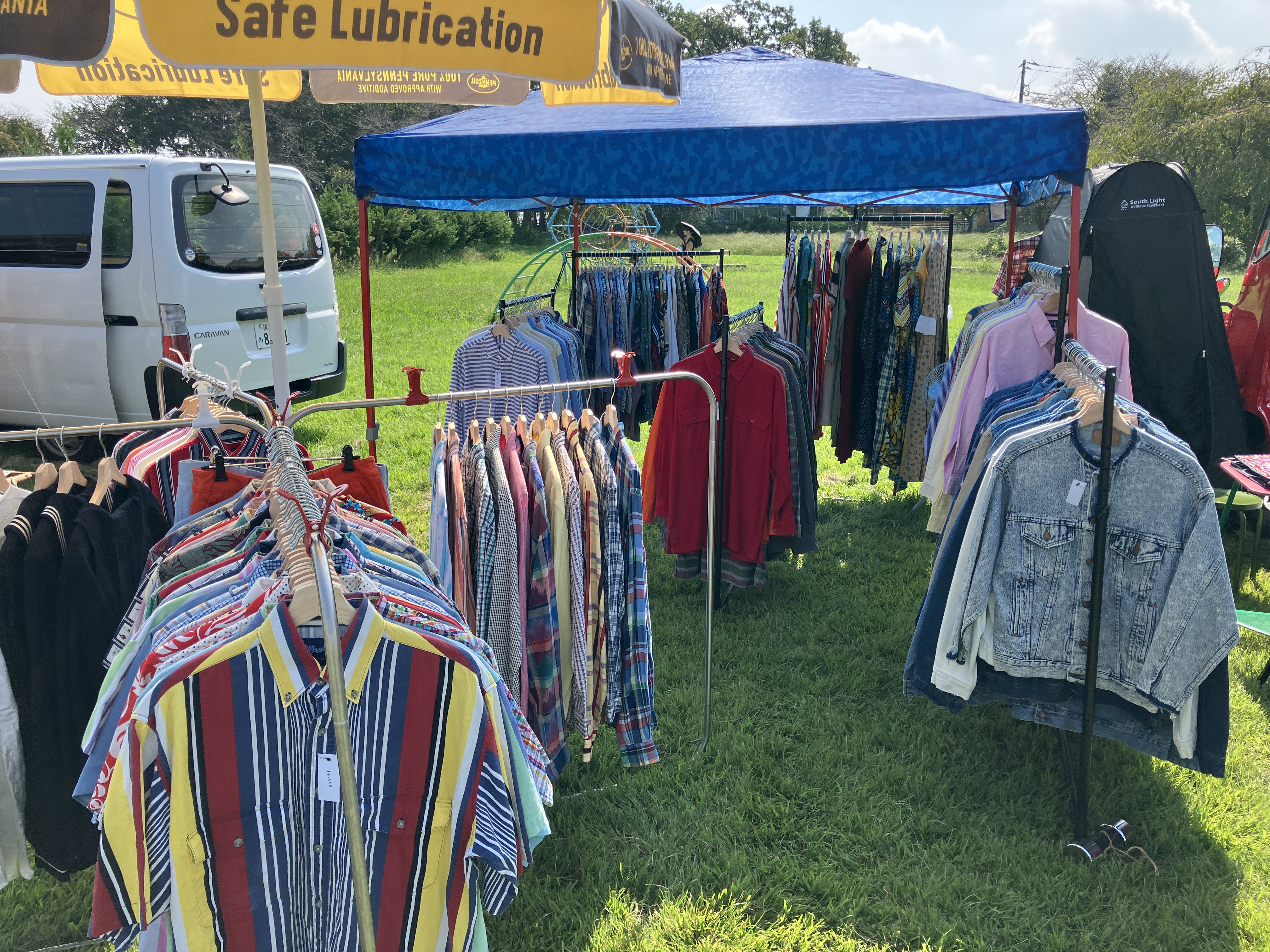 通常のキッチンカーに比べ多少場所は取りますが、インパクト抜群な古着屋です。