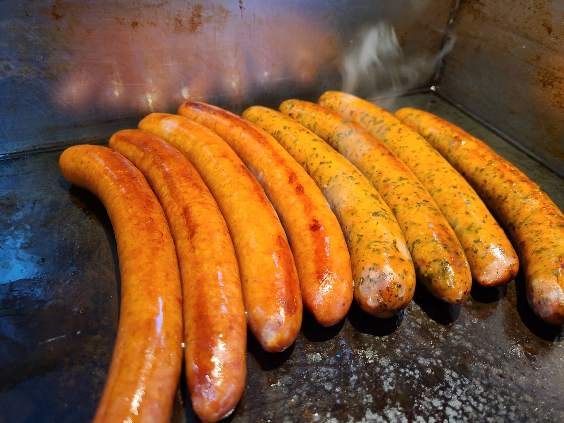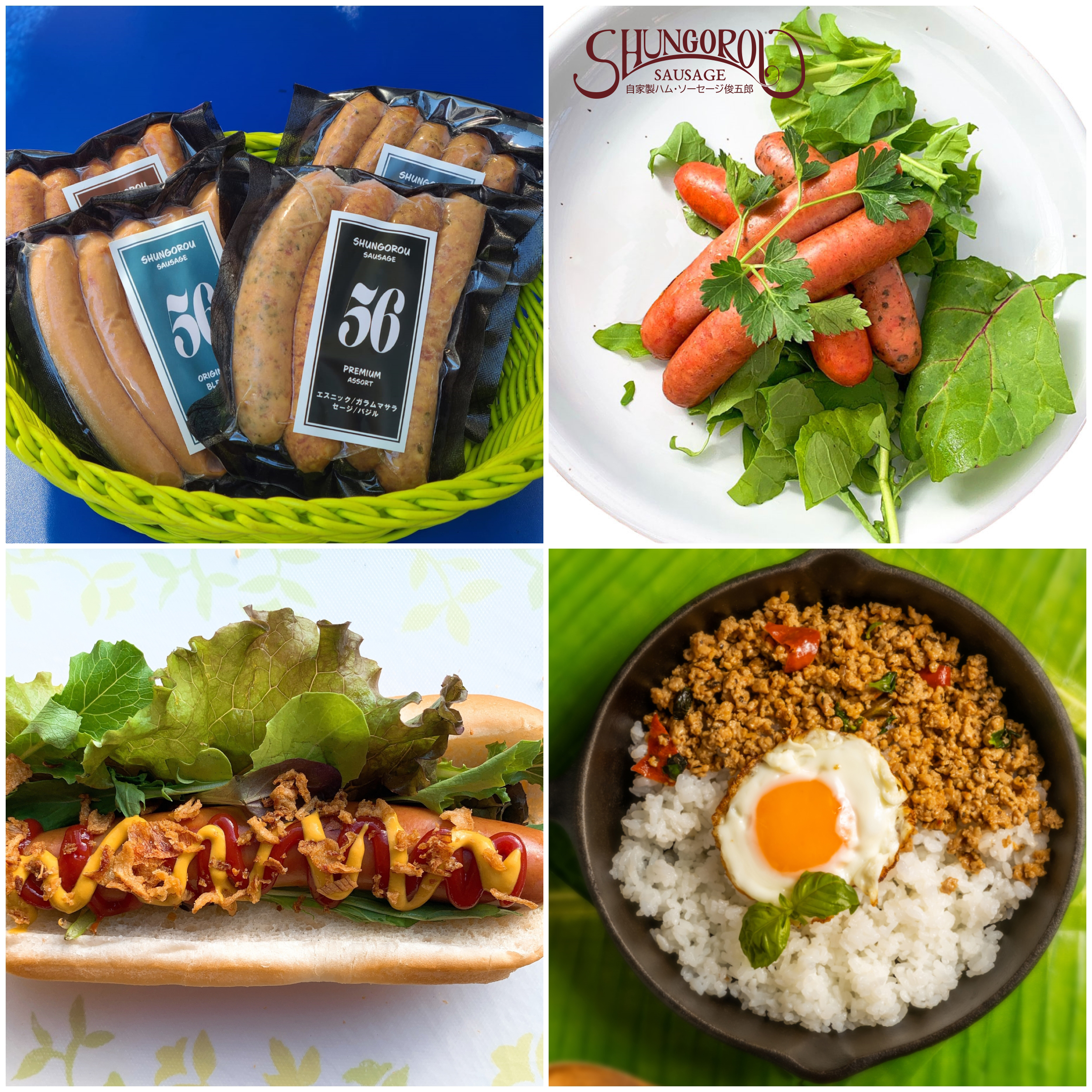 自家製ソーセージ、フランクフルト、ホットドッグ、ガパオライス、他