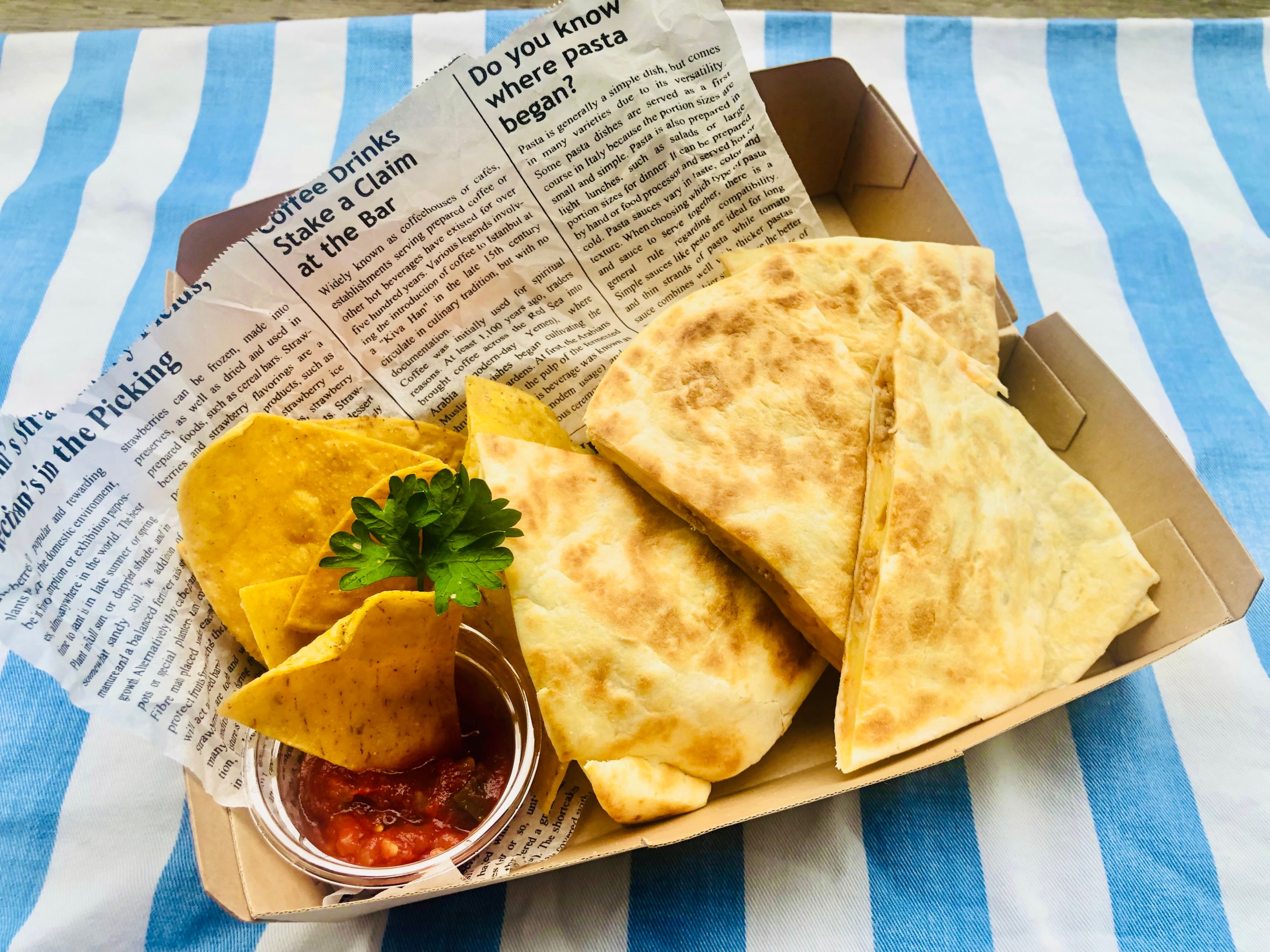 ブリトーの同じ生地でチーズたっぷり、お肉とハラペーニョを入れて焼いた、ランチにおつまみにぴったりな一品です。