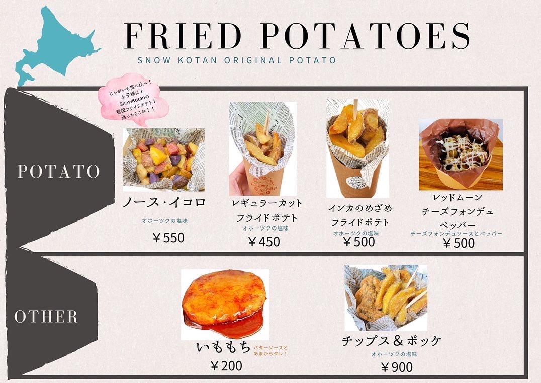SnowKotan(スノーコタン)はフライドポテト専門のキッチンカーです!北海道十勝産のじゃがいもを使用し、こだわり抜いたレシピで丁寧に作るフライドポテトは、子供たちはもちろん、ビールと一緒に大人も楽しめるフライドポテトに仕上げました!