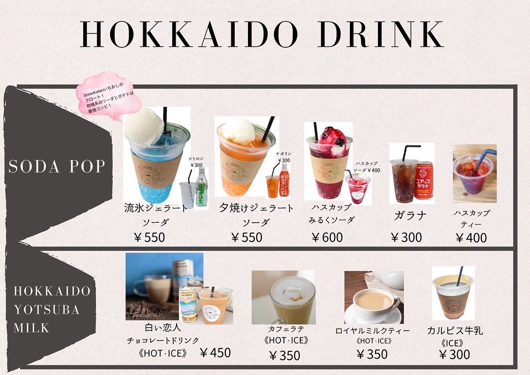 北海道限定ドリンクや定番おやついももちなど、豊富な北海道メニューが魅力です。