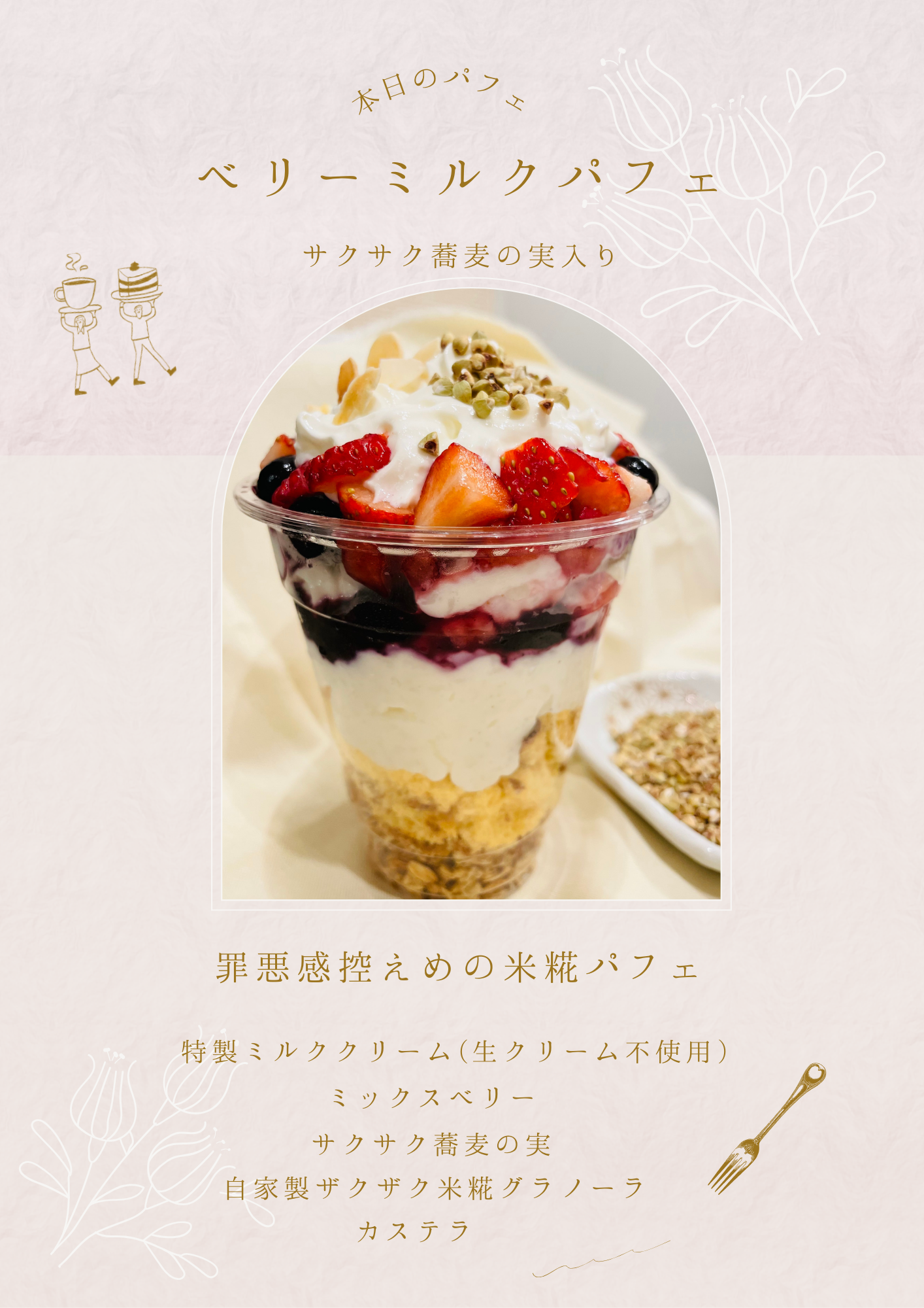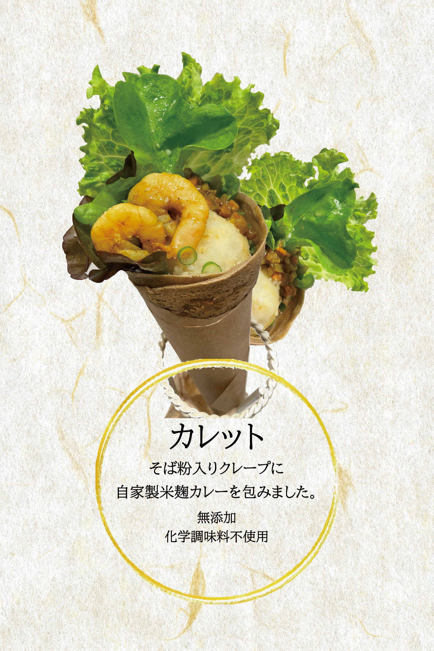 ガレット、ゴマだれ冷やし麺、米麹パフェ、スイーツ、ドリンク