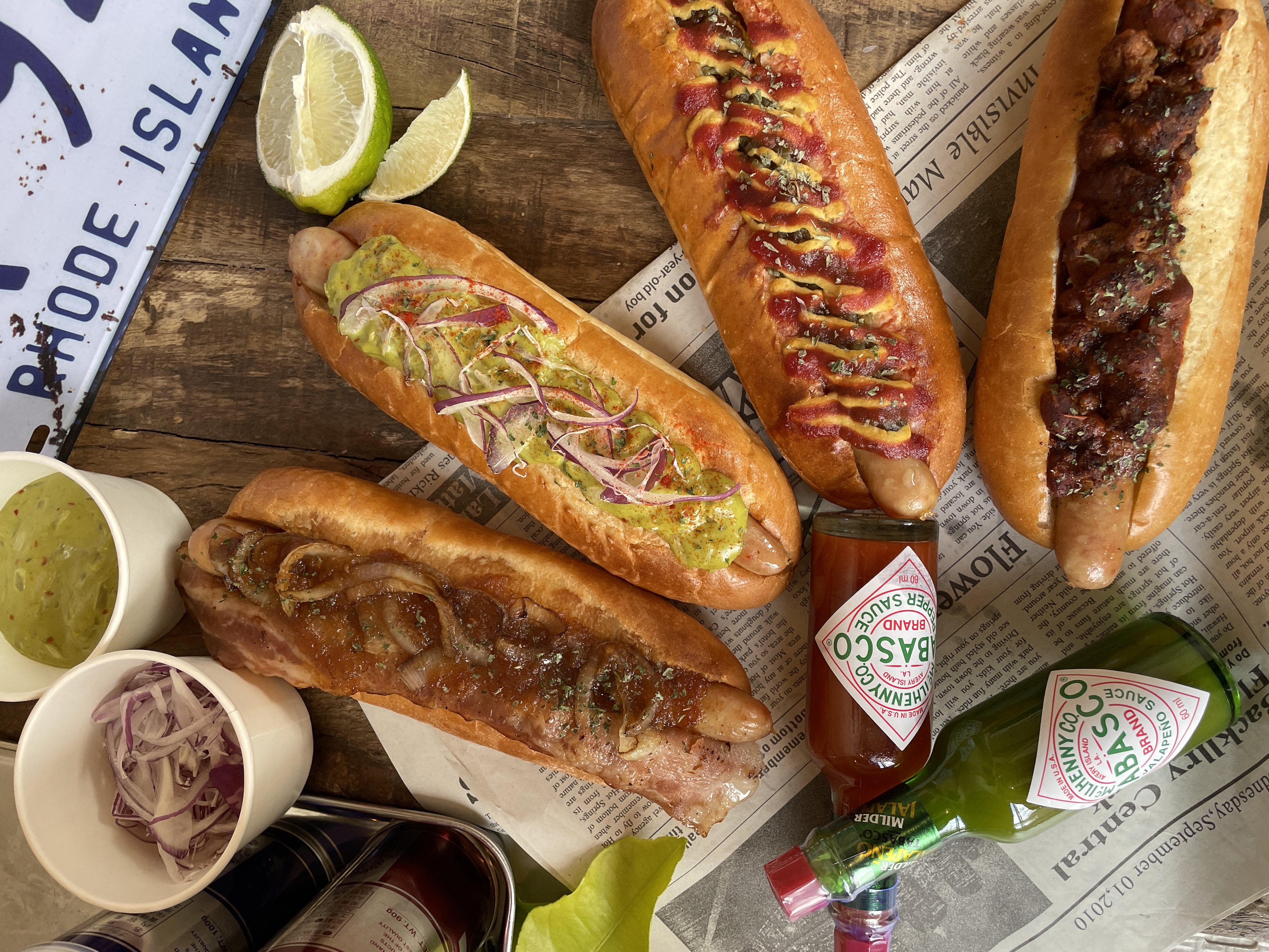 その上に当店オリジナルの和風ペッパーBBQソースをたっぷりとかけた満足感のあるホットドッグ。