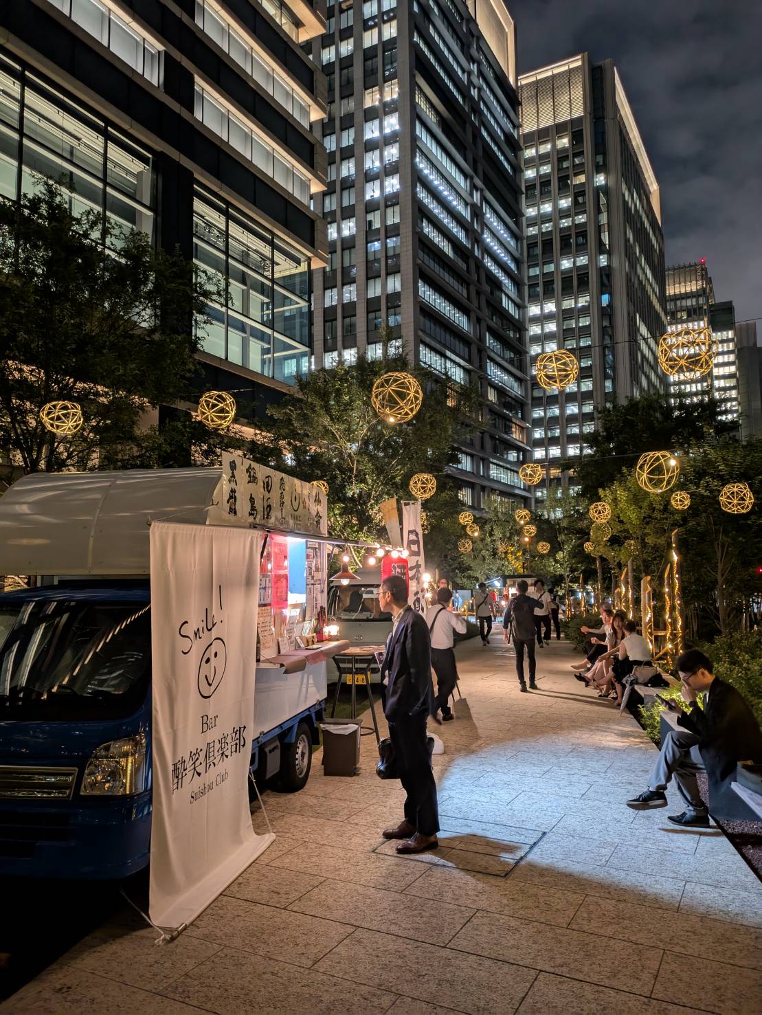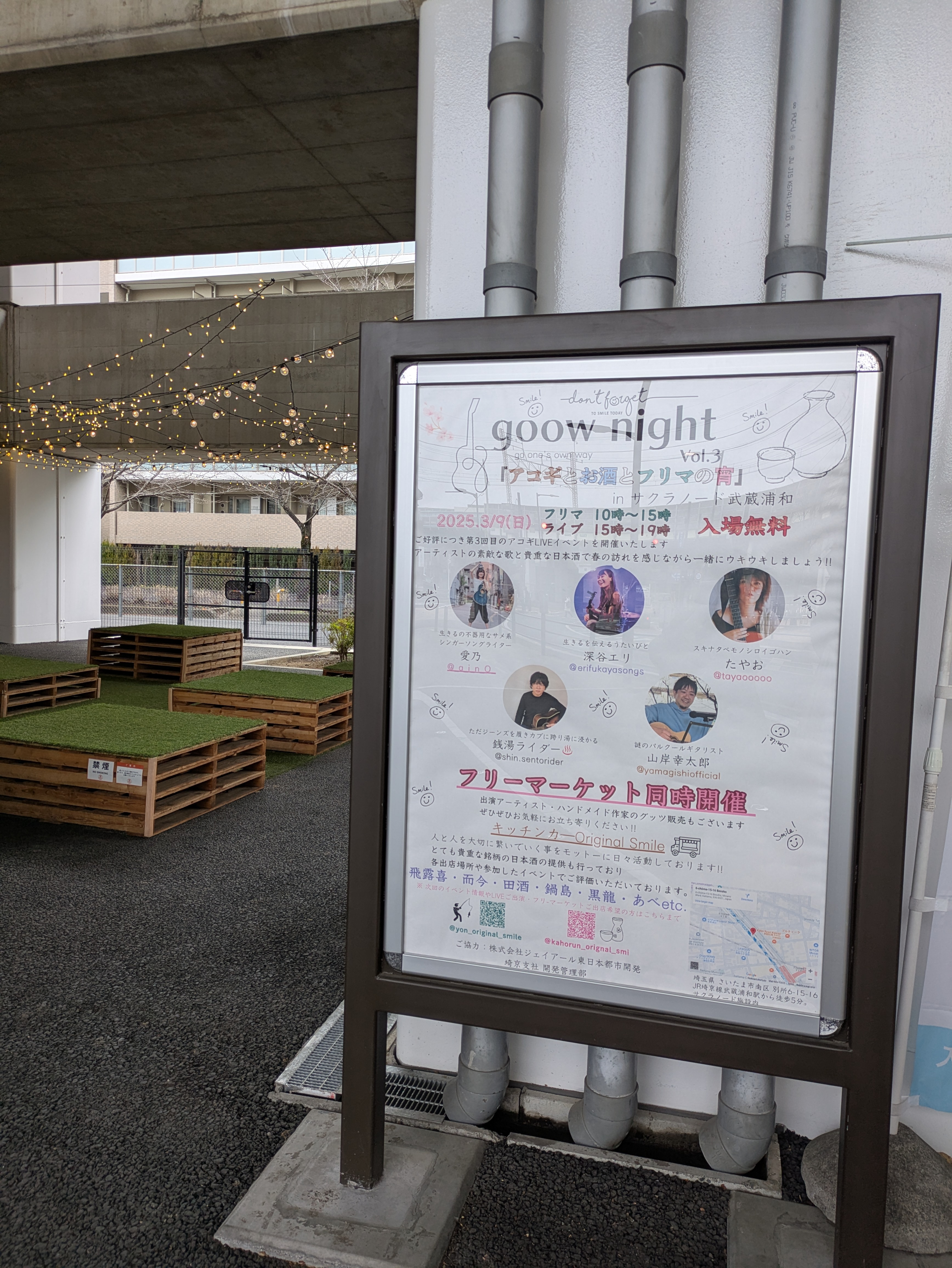 当店主催でアコースティックギターでの弾き語りライブイベントを定期的に開催しております。酔笑俱楽部のキッチンカ―では日本酒をご提供‼