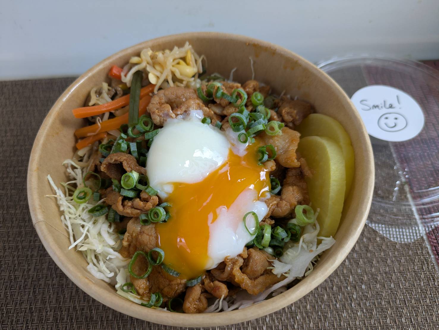 日本酒などのアルコール、おむすび、米粉クレ―プ、揚げ物、旨辛肉味噌丼などの丼
