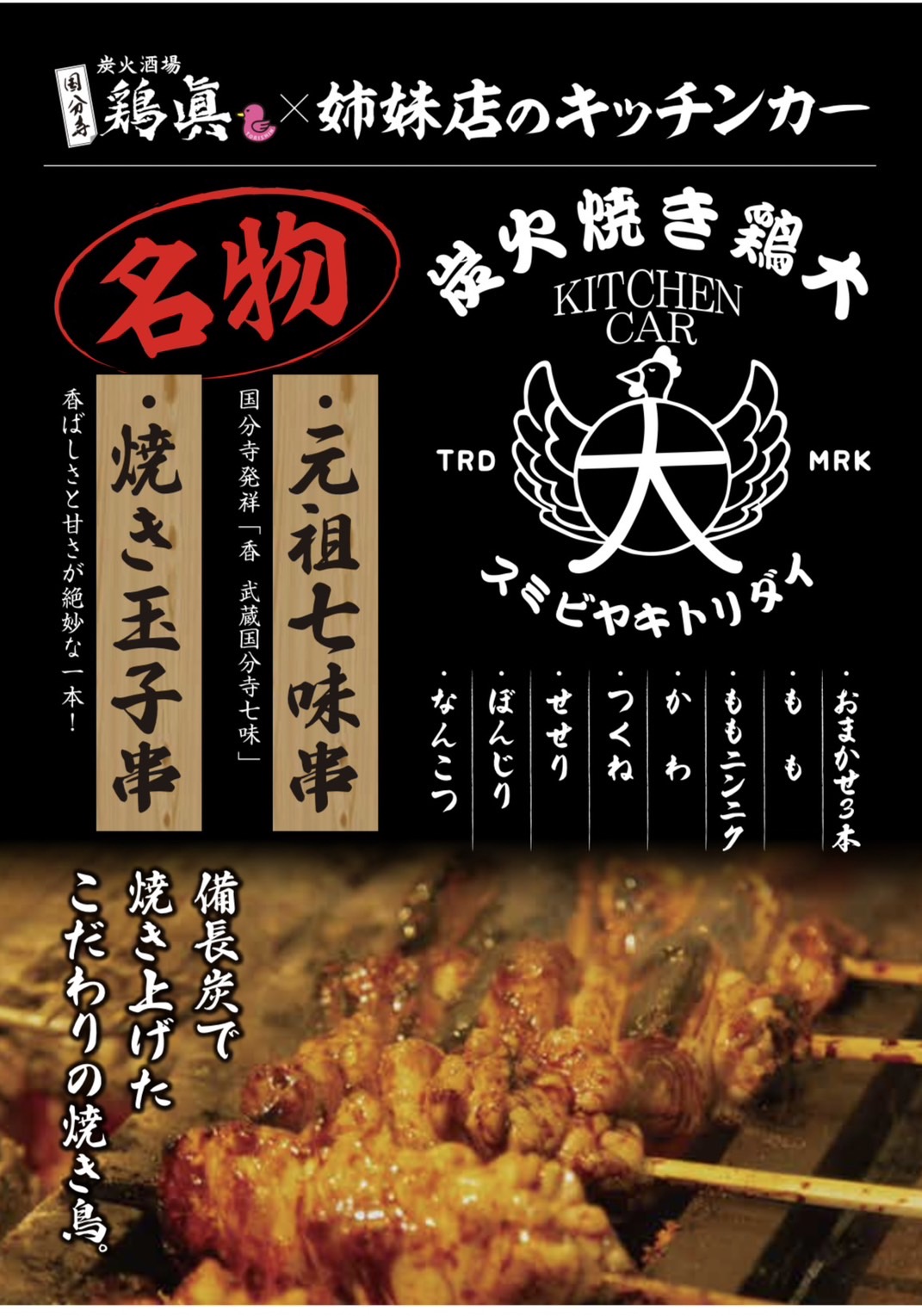 西多摩西部地域で一番予約の取りずらい焼き鳥店鶏眞の姉妹店キッチンカーです。