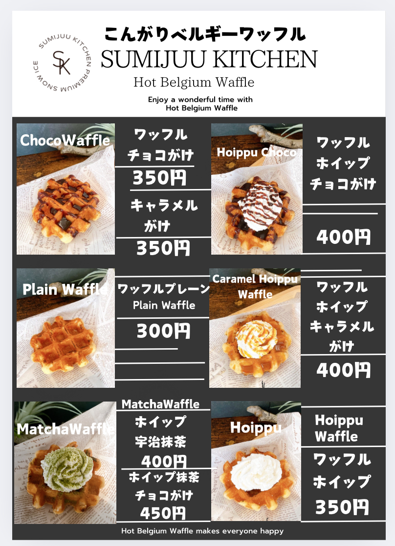 ベルギーワッフル、ふわトロかき氷をご提供いたします。