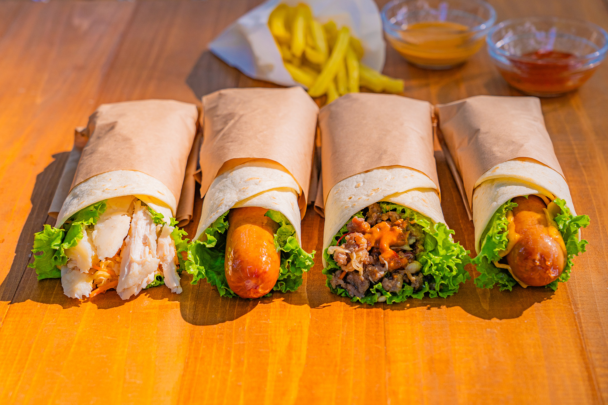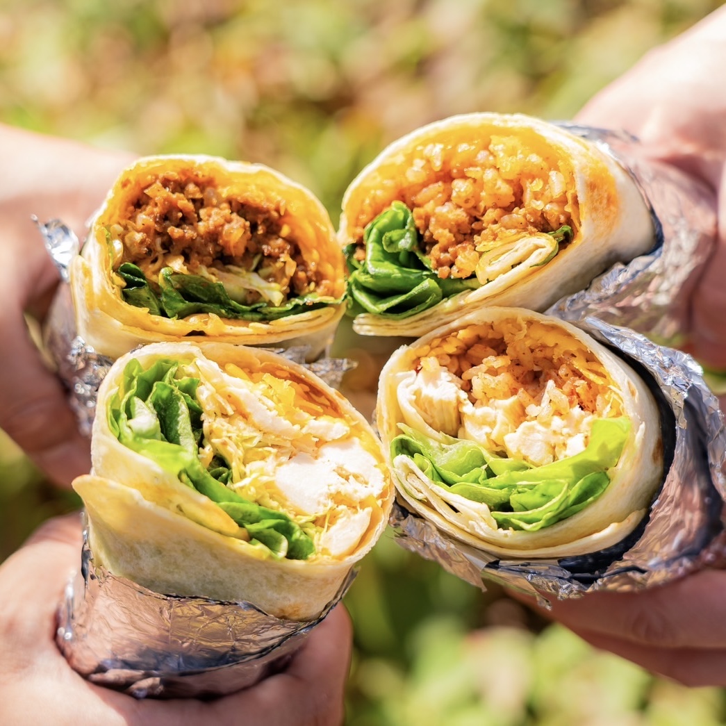 トルティーヤでお肉や野菜を巻いたラップサンド、ブリトーはワンハンドで食べやすく、場所を問わずお召し上がりいただけます!
