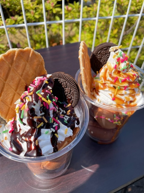 ベビーカステラ、チュロス、かき氷、フルーツ飴、ドリンク類