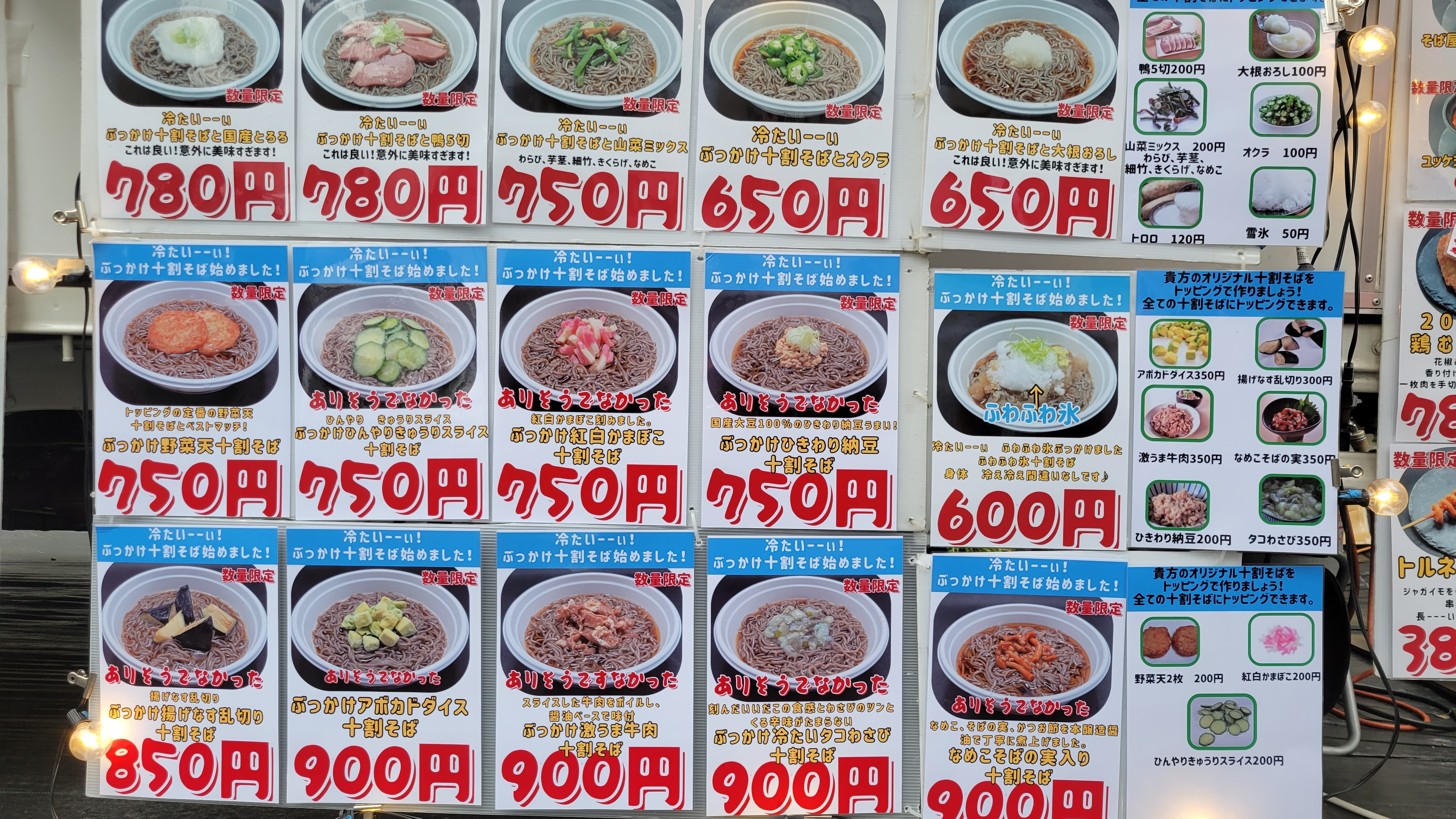 北海道産そば粉と水だけで作っております。つなぎは一切使用しておりません。風味豊かな十割そばを是非ご堪能下さい。アド街っく天国で紹介されました。