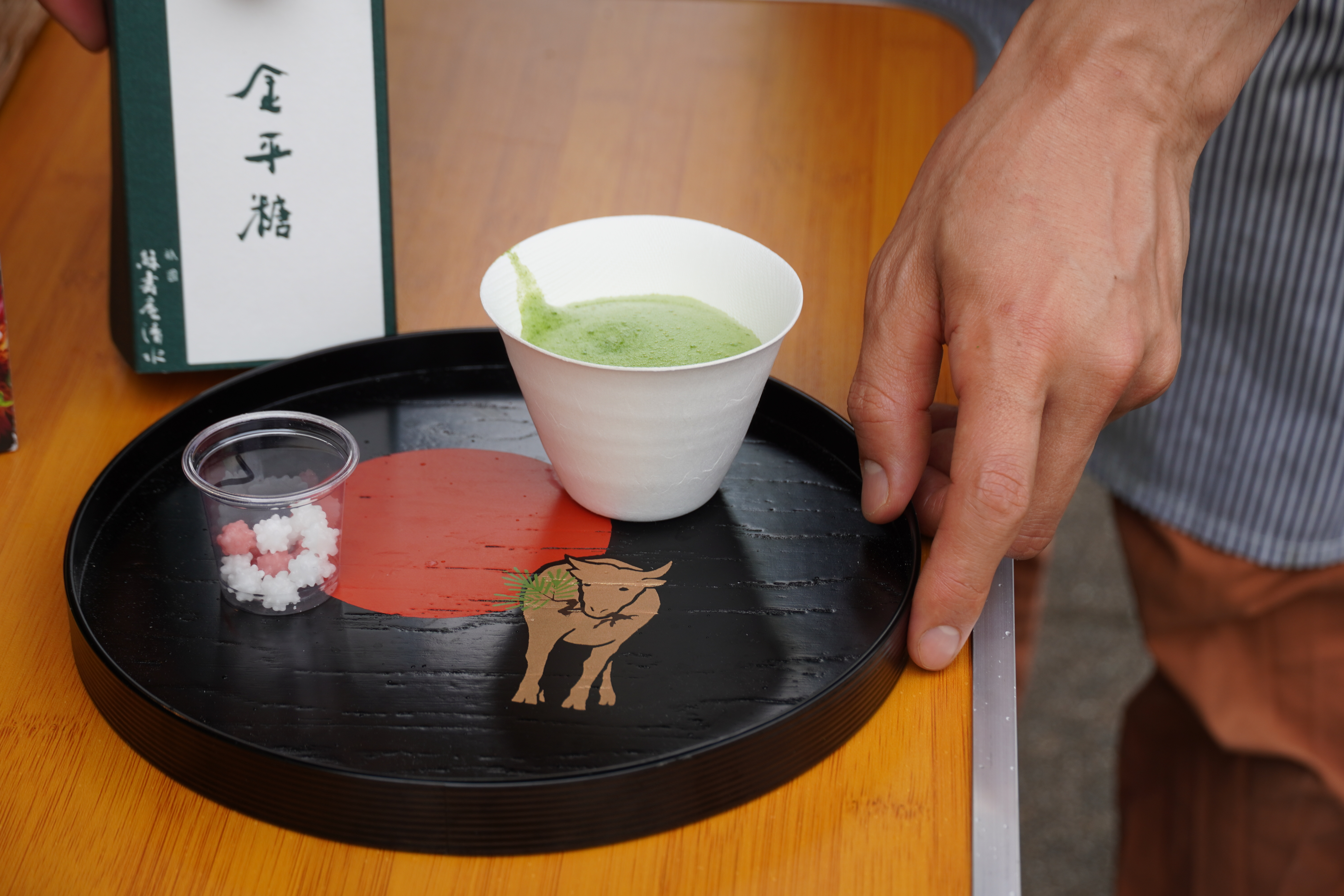 京都を中心に活躍する絵描きユニット『だるま商店』に車体ペイントを依頼。和のベースの車体に、正面(販売窓上)には水の神様である龍神を、背面には子供達もよろこびそうなおめでたい絵をあしらいました。