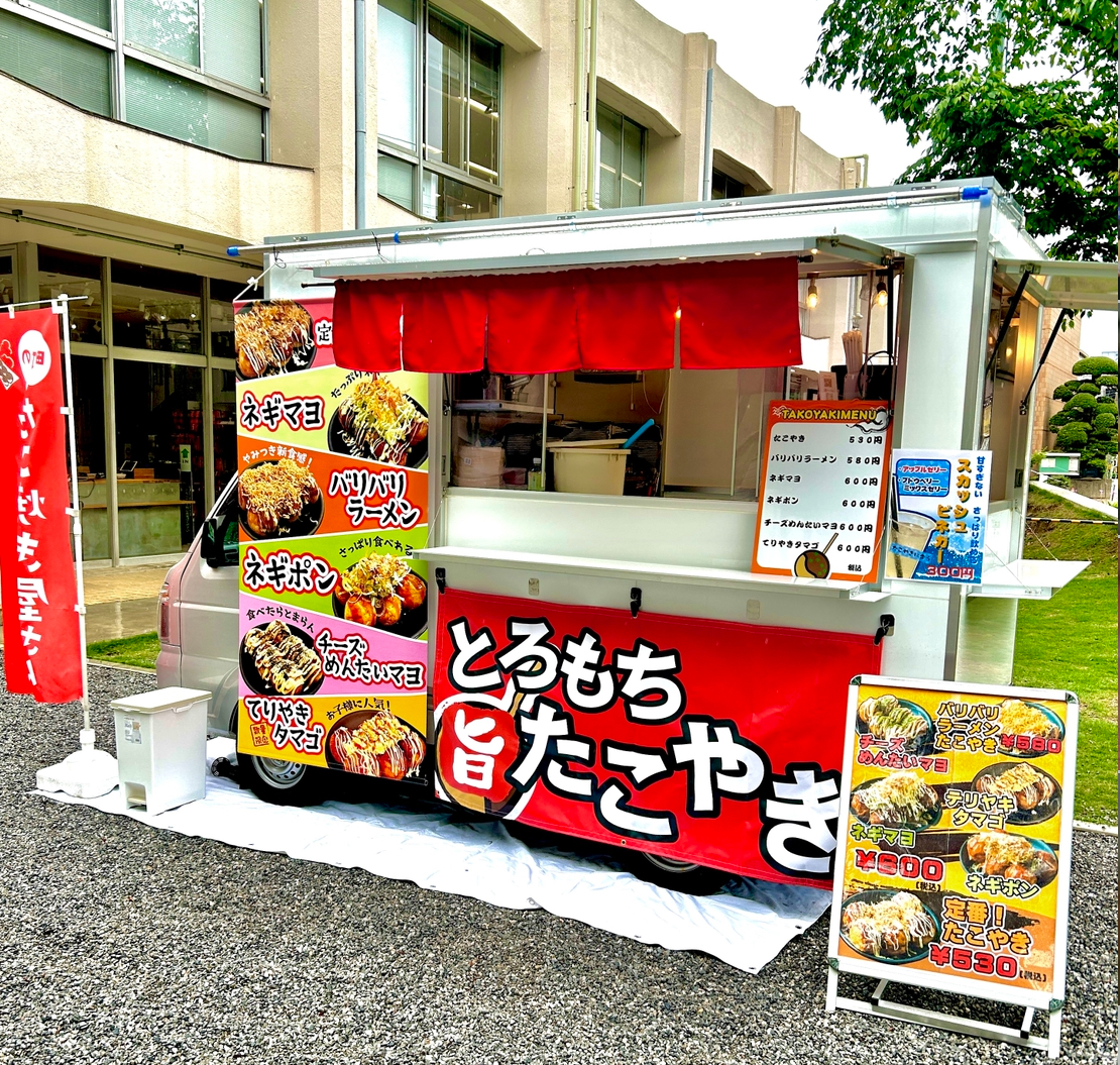 軽車両&2名体制で、スピード提供&高回転が可能なメニュー構成。電源不要・狭小スペースも対応OK。商業施設・祭り・ペットイベントなど、多様な出店実績あり。