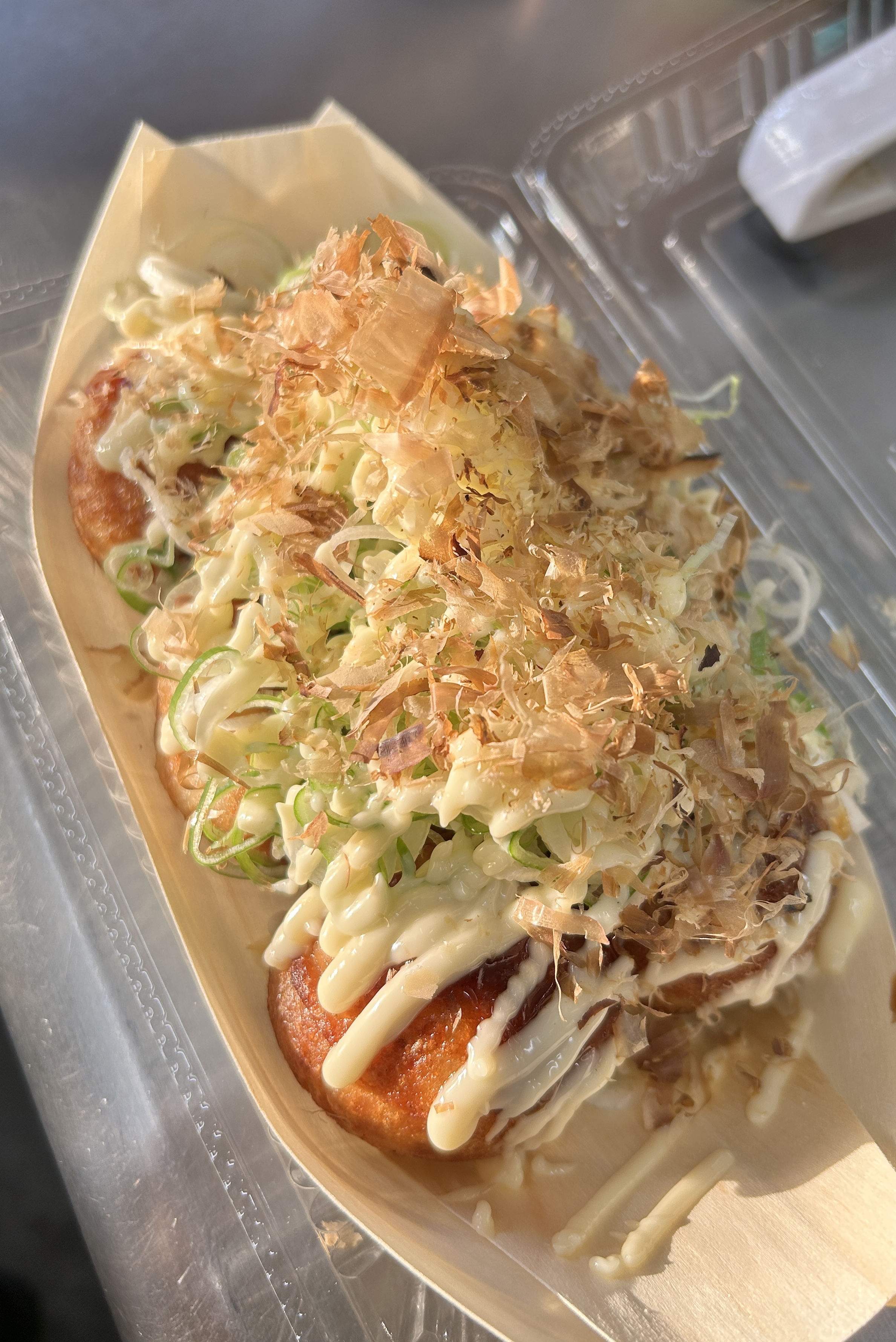 「ネギマヨ」「ネギポン」などのご当地素材を活かしたトッピング6種に、季節ごとの限定フレーバーも登場。選ぶ楽しさと地元愛がつまった、イベント映えするたこ焼きです!