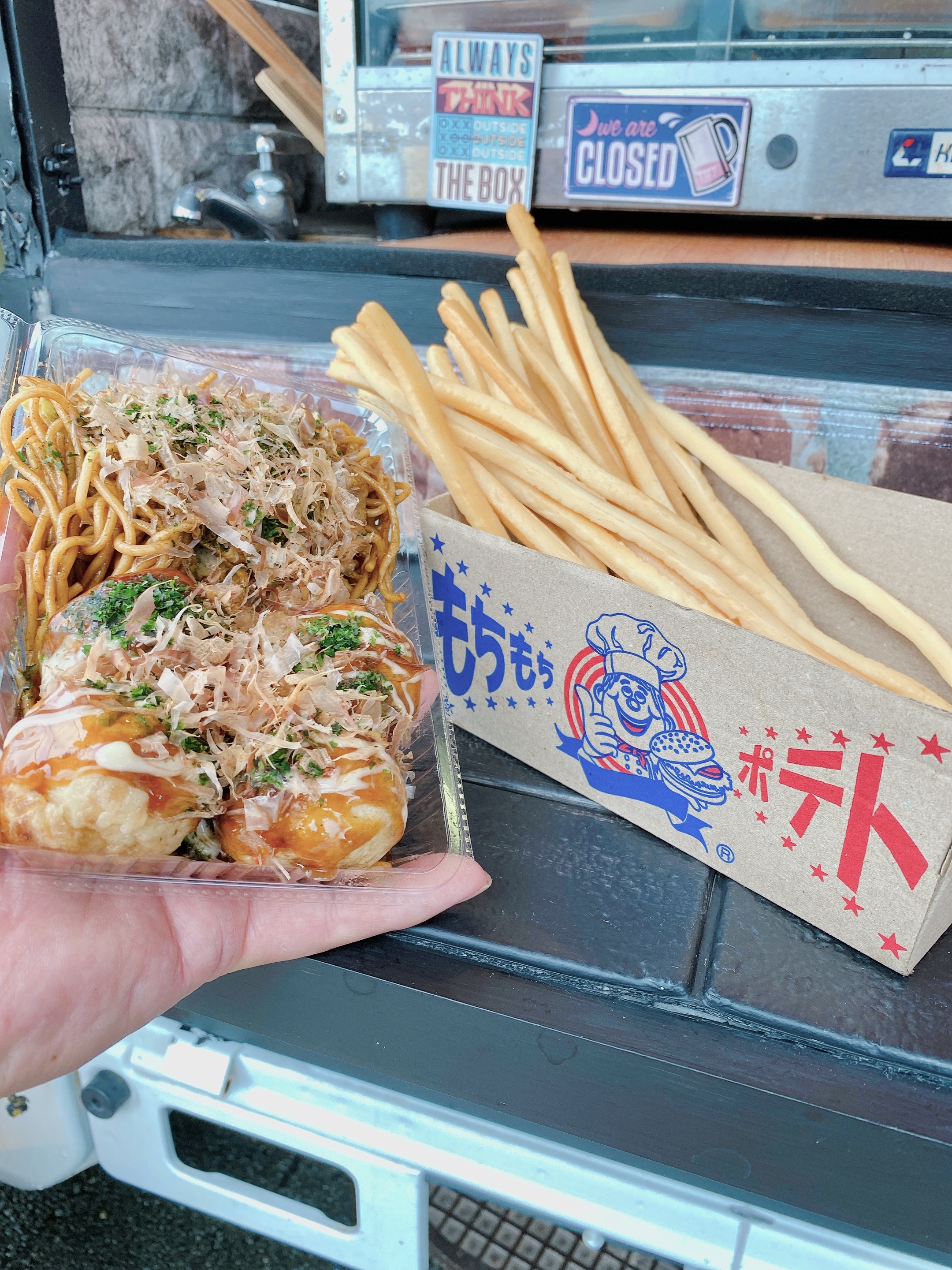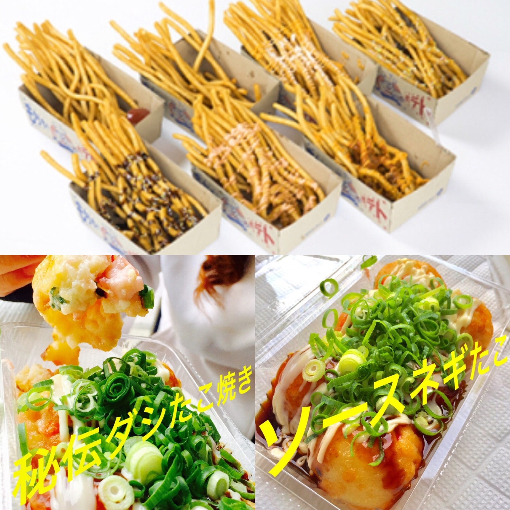 元祖もちもちポテト、たこ焼、ソフトドリンク各種、アルコール各種要望可、その他