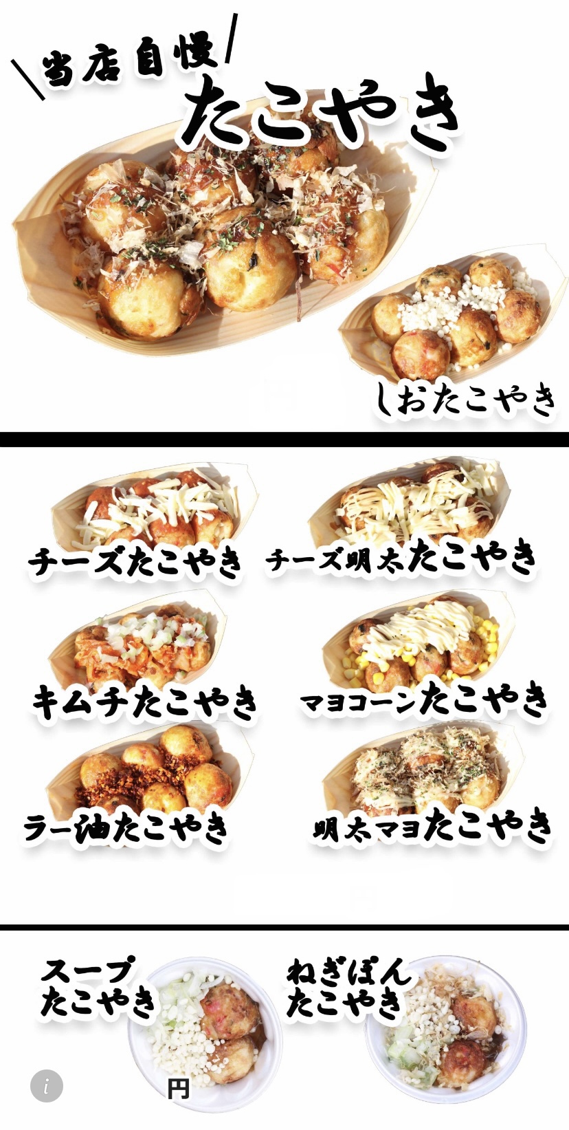 定番のソースたこやきから女性に大人気しおたこやき、リピーター続出のラー油たこやきと全10種類のメニューと豊富なラインナップ!