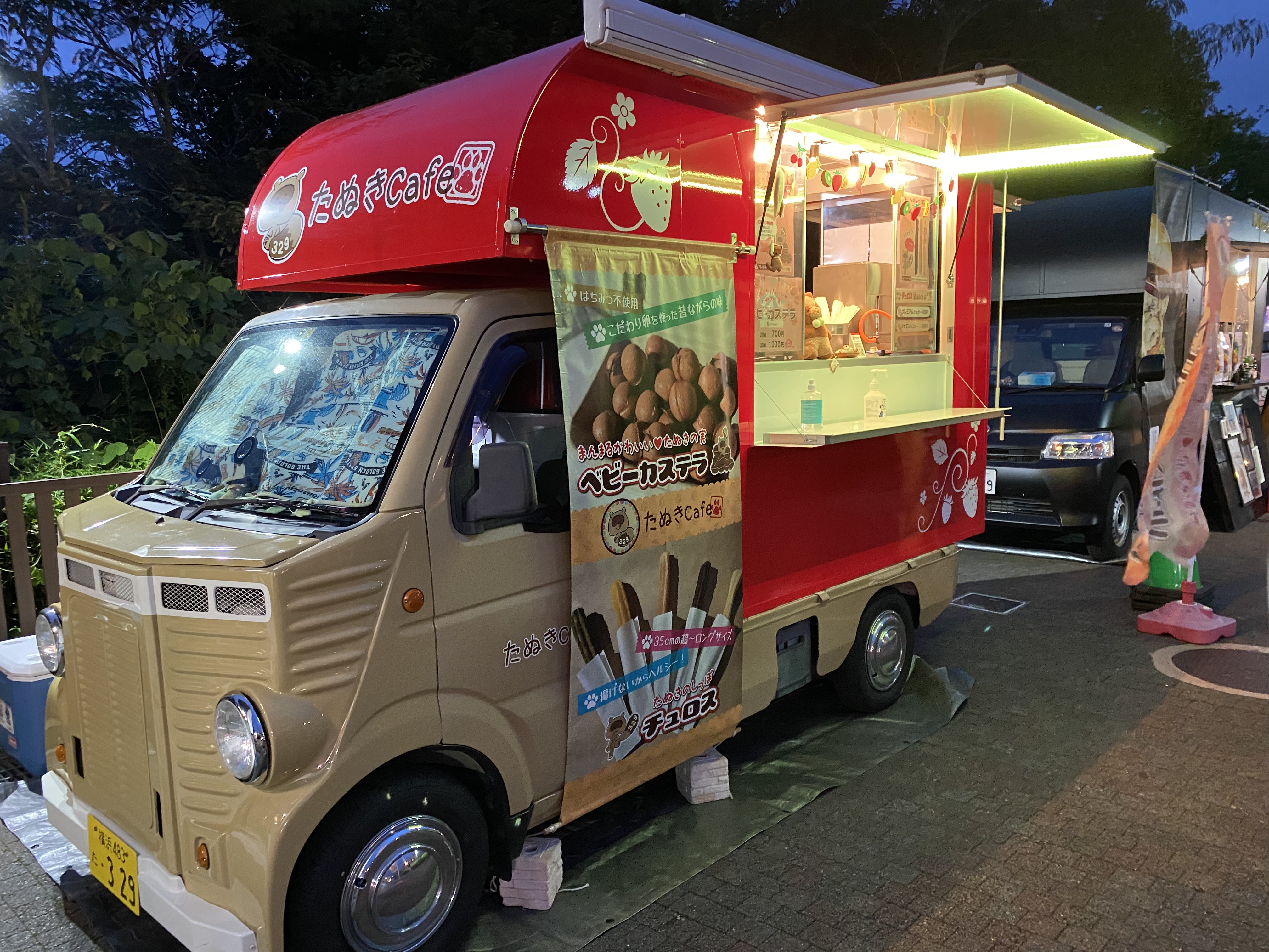 たぬきCafe329のキッチンカーは真っ赤で可愛いオシャレなキッチンカーです。