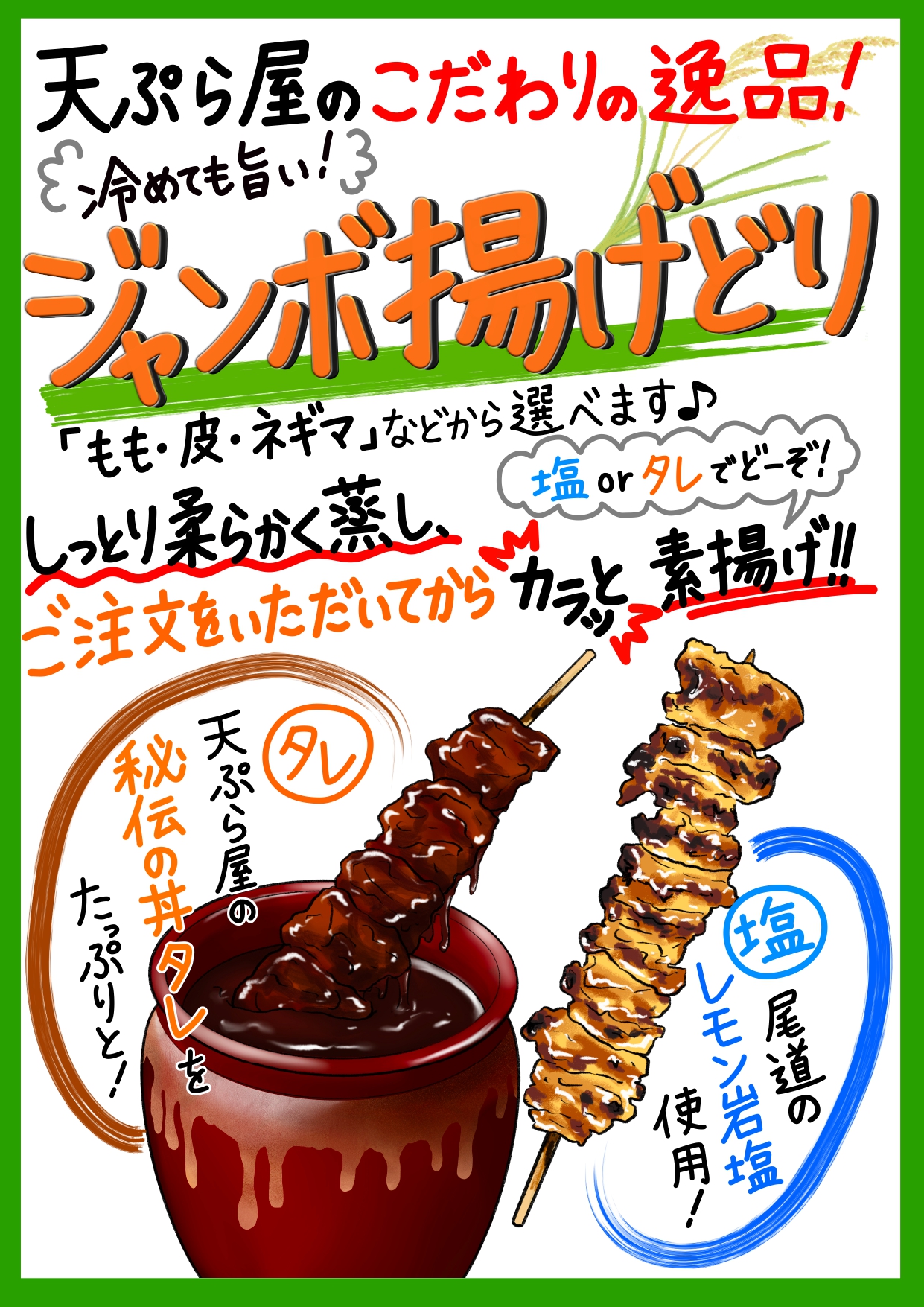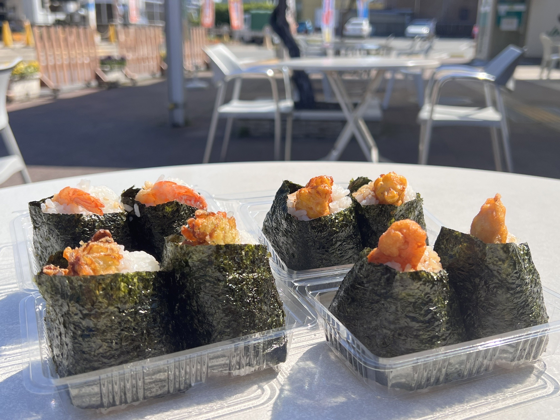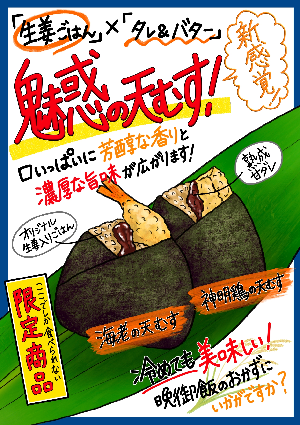 天むす、天丼、揚げ鶏、揚げたこ焼き